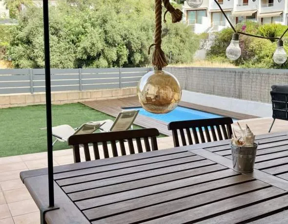 Schöne Erdgeschosswohnung mit gemütlicher Atmosphäre und einladendem Design. Das sehr helle Wohnzimmer mit Essbereich lässt Sie die Freude und den Komfort spüren. Die Terrasse und der private Pool werden Sie während der warmen Sommertage und Nächte verwöhnen. Sie haben auch Zugang zum gemeinschaftlichen Pool.