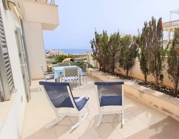 Eine großzügige Terrasse mit Meerblick, ausgestattet mit einem Grill, um die herrlichen mediterranen Sommernächte zu genießen.