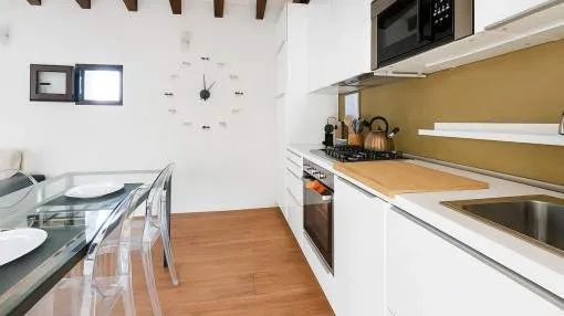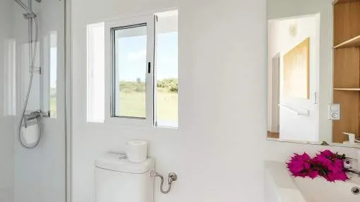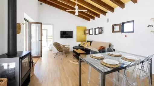 Objektbeschreibung: Diese liebevoll kernsanierte Finca aus dem Jahr 2019 befindet sich auf einem ca. 4.100 m² großen, ebenen Grundstück in ruhiger Lage mit wunderschönem Blick auf die Sierra de Tramuntana und das nahegelegene Dorf Campanet, das in wenigen Minuten erreichbar ist. Die Wohnfläche von rund 60 m² verteilt sich auf zwei Doppelschlafzimmer, zwei Badezimmer (beide en suite) sowie einen offenen Wohn- und Essbereich mit integrierter Küchenzeile. Hohe Decken, exzellente Isolierverglasung und eine gemütliche Ofenheizung schaffen eine einladende Atmosphäre zu jeder Jahreszeit. Für Erfrischung an warmen Tagen sorgt der angehobene, etwa 20 m² große Pool mit Panoramablick. Direkt daneben befindet sich eine Gästetoilette. Eine überdachte Terrasse mit Chill-out-Bereich, ein separater Grillbereich sowie eine gepflegte Grünfläche mit Obstbäumen runden das attraktive Außenangebot ab. Auf dem Grundstück befindet sich zudem ein Gartenhäuschen, das als Werkstatt und Lagerraum für die Solarbatterien dient. Die Finca ist energieautark und an das öffentliche Wassernetz angeschlossen. Ein besonderes Highlight ist die Ferienvermietlizenz für bis zu 4 Personen, die diese Immobilie nicht nur zu einem idyllischen Rückzugsort, sondern auch zu einer attraktiven Investition macht. Rendite aus Ferienvermietung: Mit dem „Porta Holiday Renditerechner“ können Sie zur ersten Orientierung unverbindlich Ihre potenziellen Einnahmen aus einer möglichen Ferienvermietung berechnen. Hinweis: Aufgrund der aktuellen Gesetzeslage kann es in bestimmten Gemeinden zu einer Beschränkung der Vermietbarkeit kommen bzw. werden keine neuen touristischen Lizenzen mehr vergeben. Ihr Porta Mallorquina Immobilienberater berät Sie gerne, ob die von Ihnen gewählte Immobilie davon betroffen ist. Hier geht’s zum Renditerechner. Lage & Umgebung: Die Region um Alcudia ist geografisch gesehen eine Halbinsel. Bonaire, mit den Nebenorten Mal Pas, Manresa und Barcarés auf der Nordseite der Halbinsel gelegen, ist eine sehr grüne und friedliche Urbanisation, welche in drei verschiedenen Bauphasen entstanden ist und von alteingesessenen Villen in erster Meereslinie bis zu einem Neubaugebiet am oberen Teil des Hanges mit wunderschönem Landschafts,- und Meerblick, für jeden Immobilieninteressenten etwas zu bieten hat. Nach Alcudia, mit allerlei Geschäften und kompletter Infrastruktur, sind es von dort aus gerade mal 5 Autominuten.