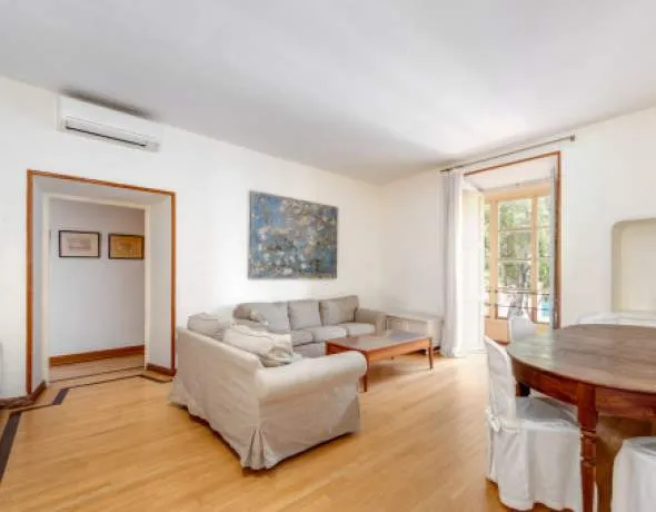 Die Wohnung befindet sich im ersten Stockwerk eines Gebäudes mit nur wenigen Nachbarn und ist über eine elegante traditionelle Treppe erreichbar. Auf rund 126 qm verteilt, bietet sie 4 Schlafzimmer – 3 davon sind Doppelschlafzimmer – und 2 komplette Badezimmer. Eine traditionelle Küche sowie ein großzügiger Wohn- und Essbereich runden das Raumangebot ab.