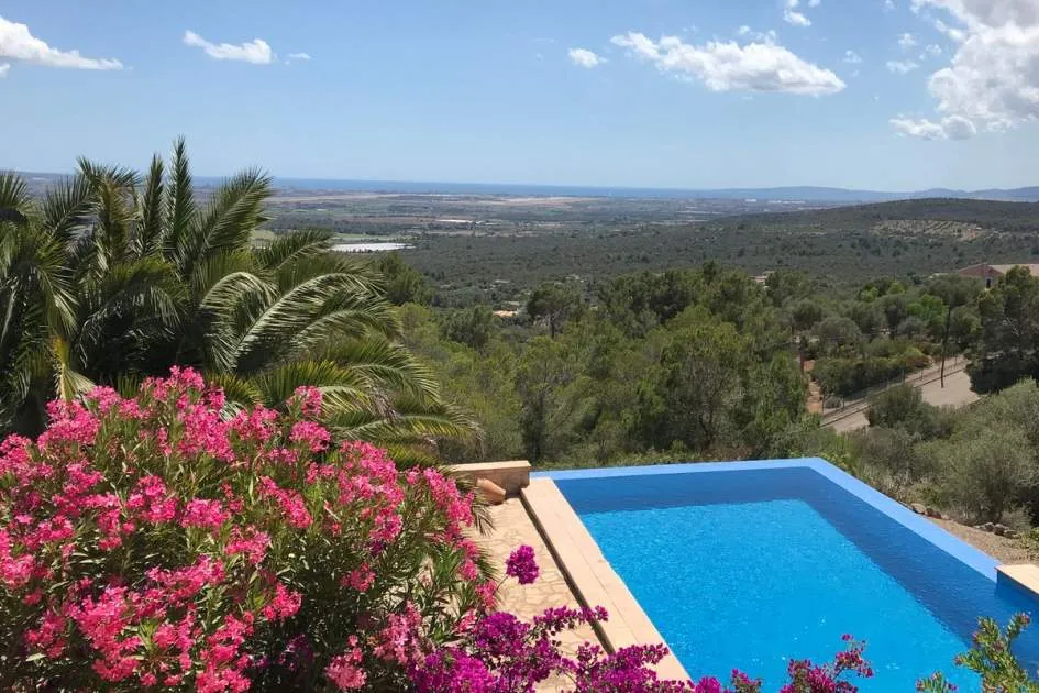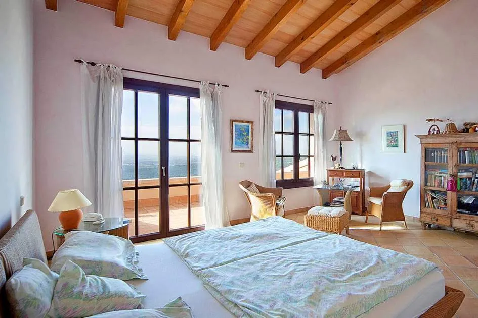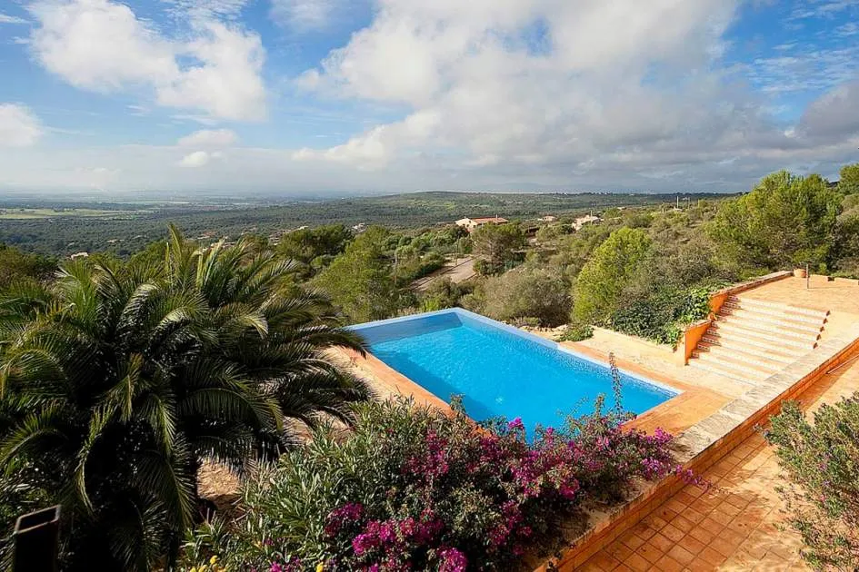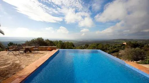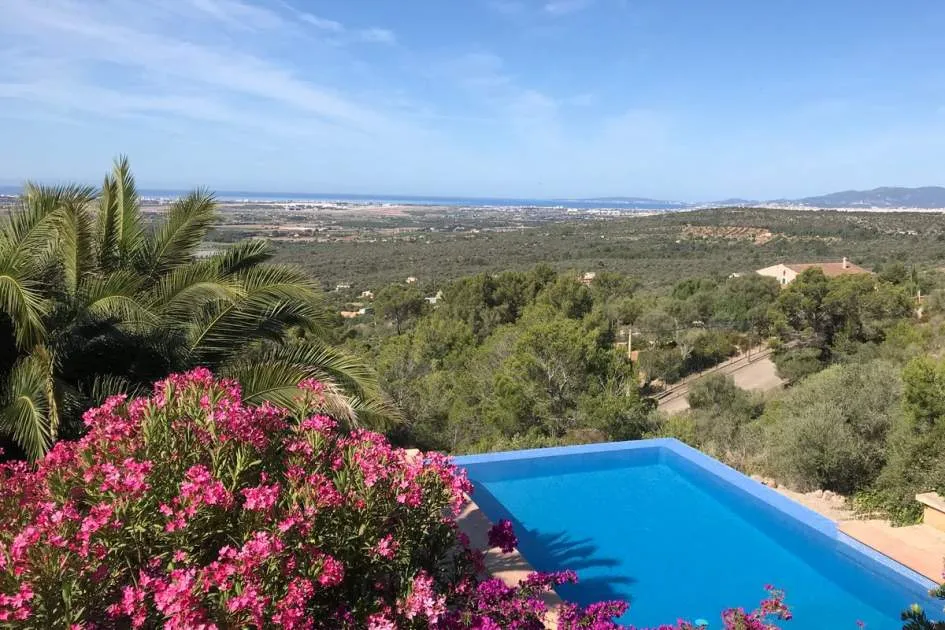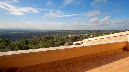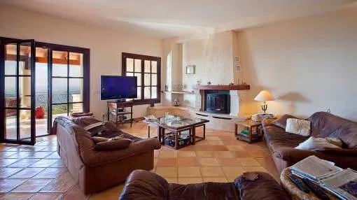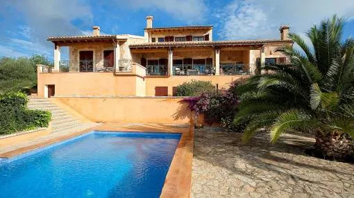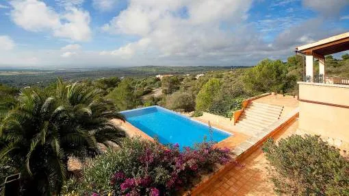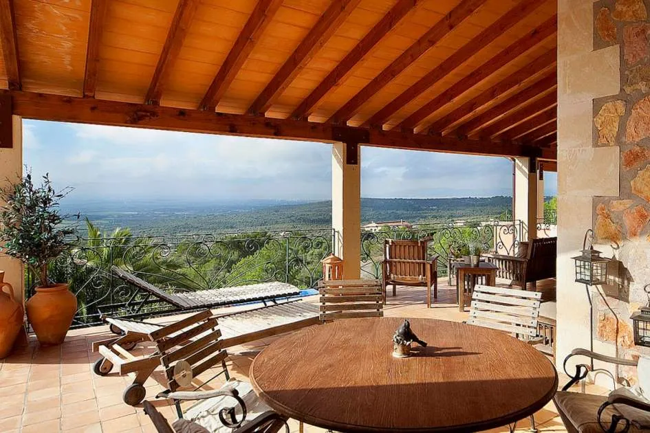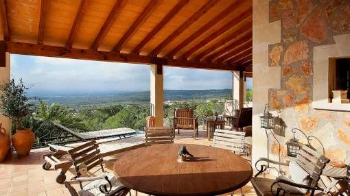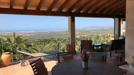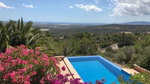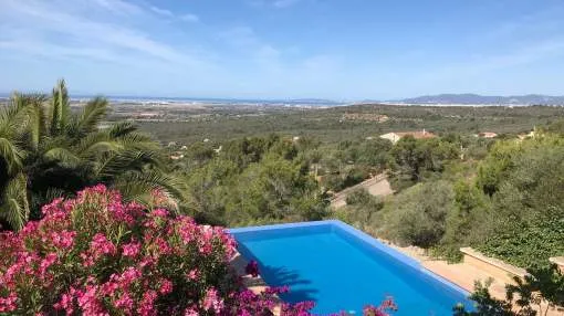 Großzügige Mallorca Villa im Landhausstil in der ruhigen Gegend von Puntiró, mit herrlichem Panoramablick bis zum Meer, ganz in der Nähe des Golfplatzes.