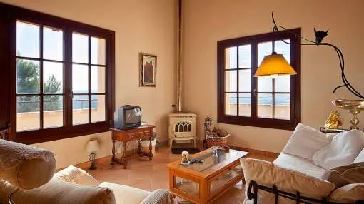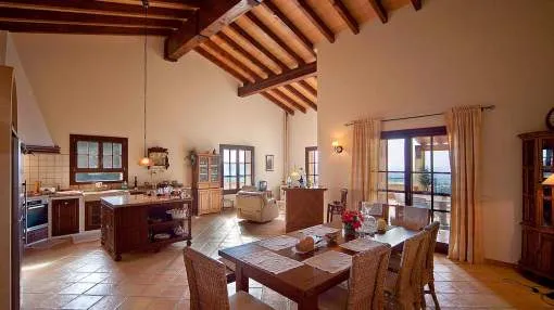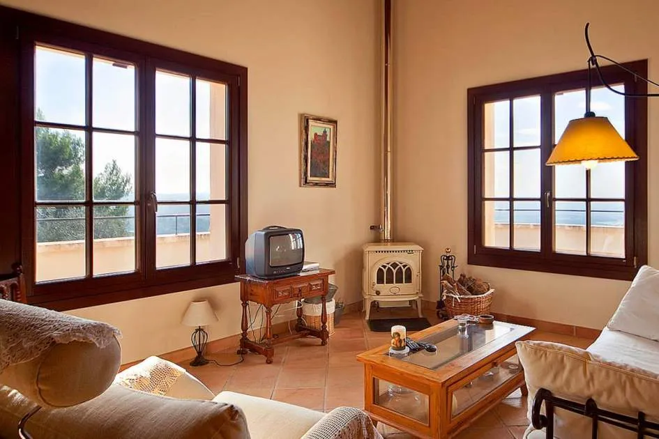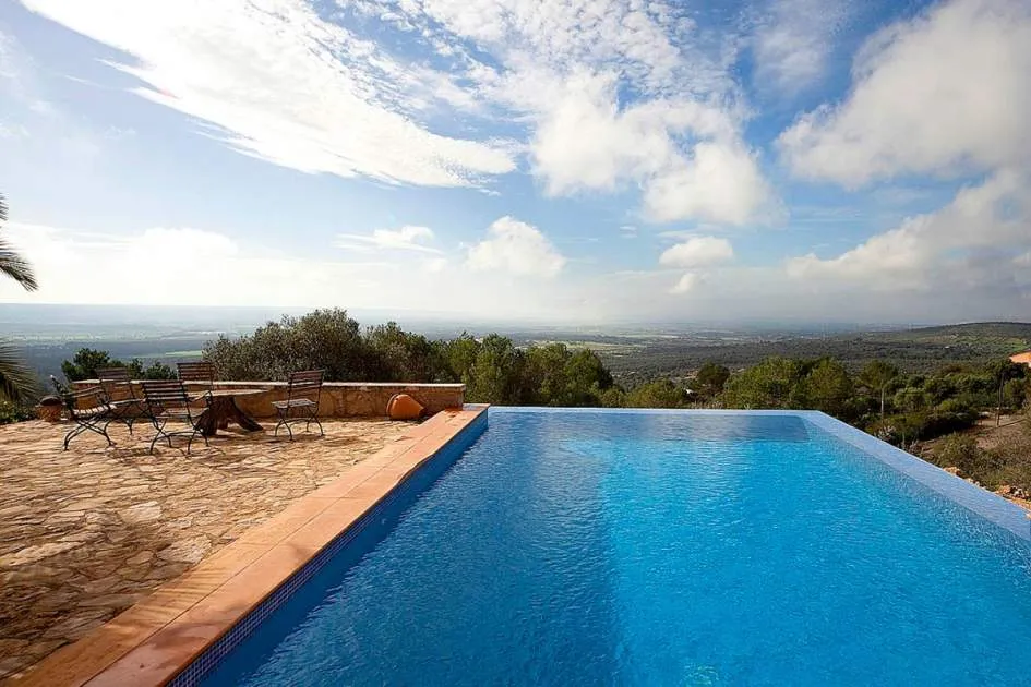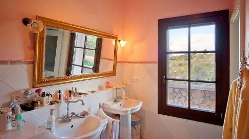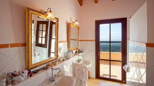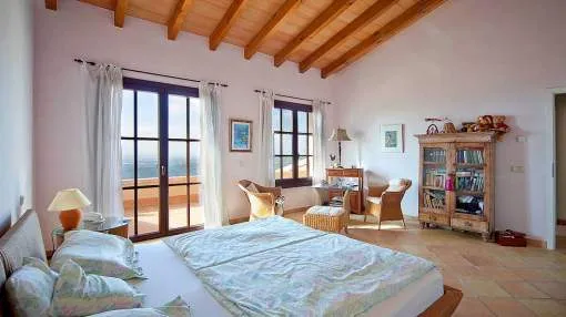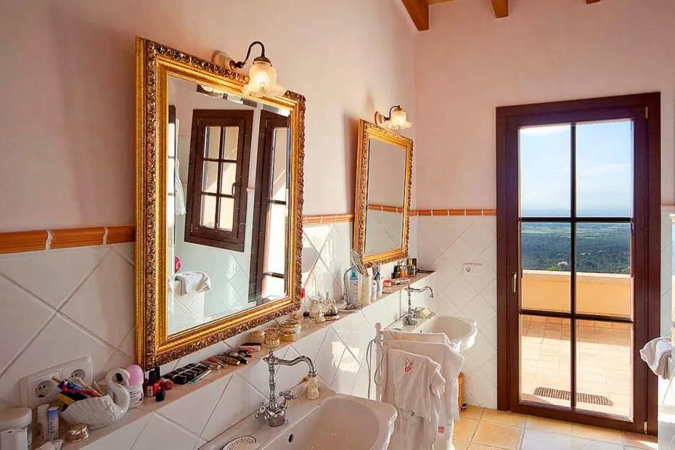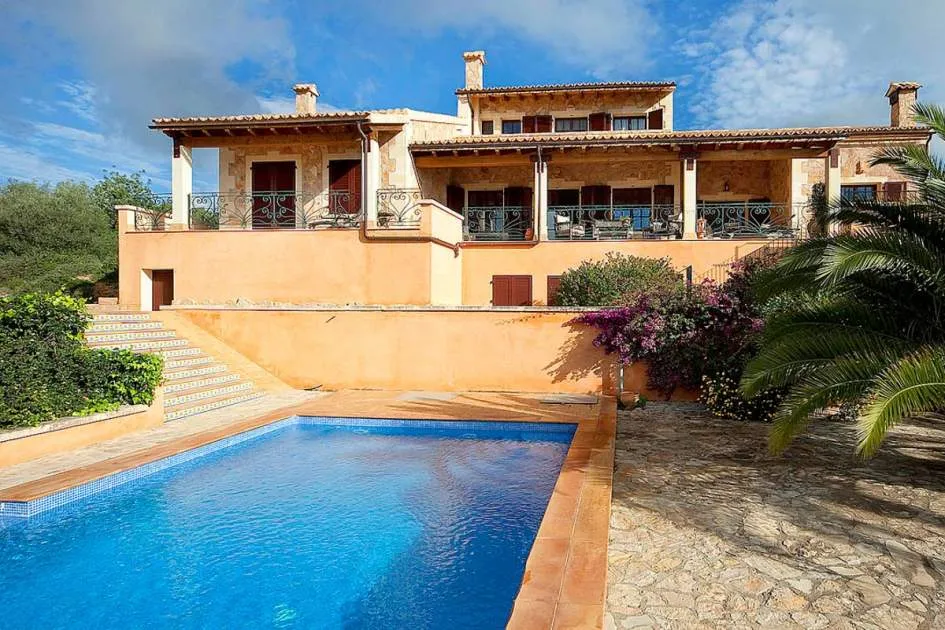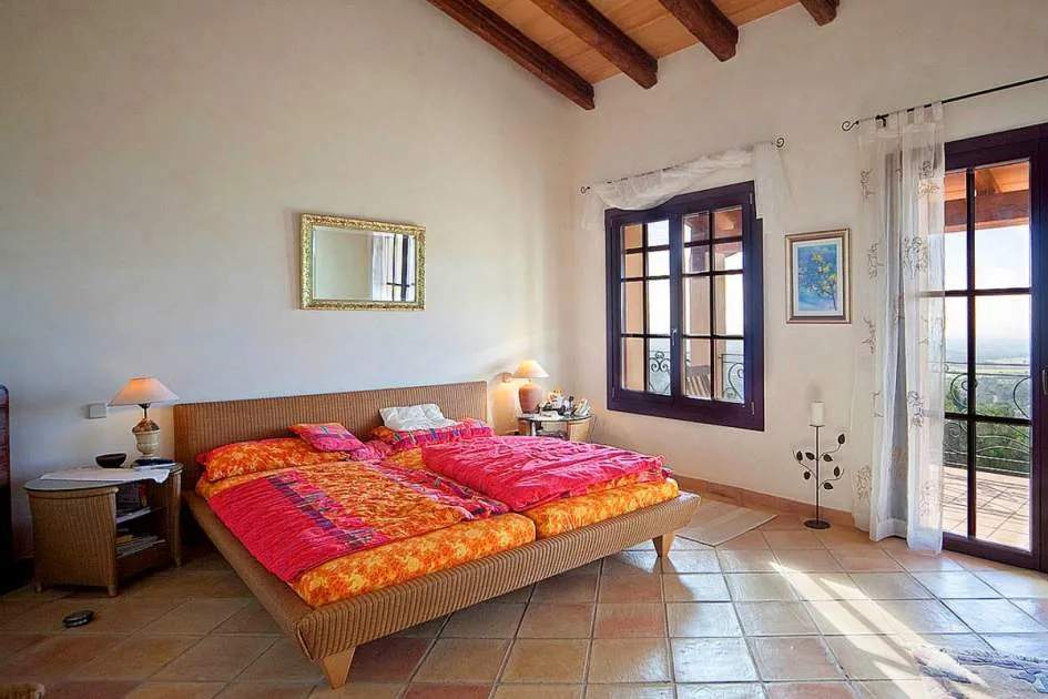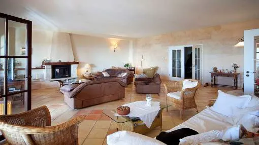 Großzügige Mallorca Villa im Landhausstil in der ruhigen Gegend von Puntiró, mit herrlichem Panoramablick bis zum Meer, ganz in der Nähe des Golfplatzes.