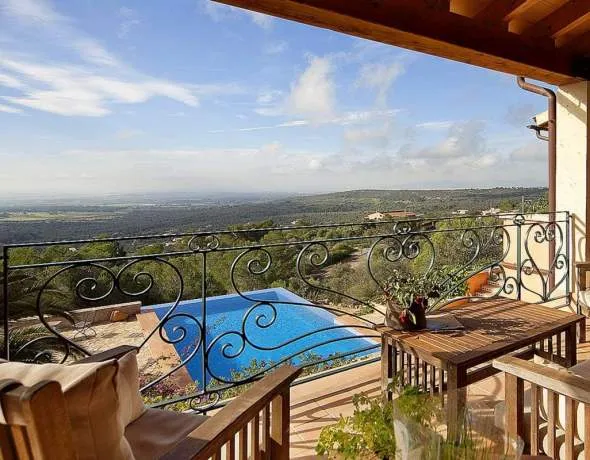 Großzügige Mallorca Villa im Landhausstil in der ruhigen Gegend von Puntiró, mit herrlichem Panoramablick bis zum Meer, ganz in der Nähe des Golfplatzes.