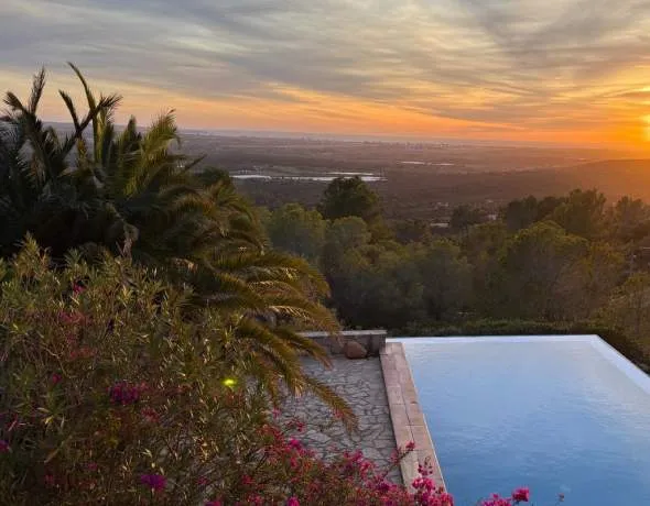 Großzügige Mallorca Villa im Landhausstil in der ruhigen Gegend von Puntiró, mit herrlichem Panoramablick bis zum Meer, ganz in der Nähe des Golfplatzes.
