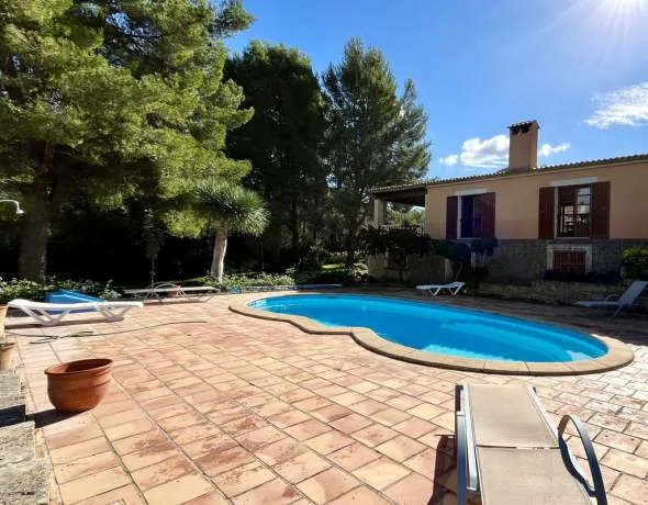 Eingebettet in eine ruhige Lage nahe dem malerischen Dorf Alaró, vereint dieses atemberaubende zweistöckige Haus mallorquinischen Charme mit großzügigen Wohnbereichen und allen modernen Annehmlichkeiten. Umgeben von Gärten, Terrassen und einem privaten Pool ist es der ideale Rückzugsort für Familien oder alle, die Ruhe und Erholung im Herzen der Insel suchen.