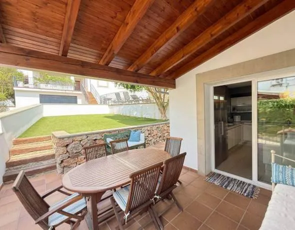 Dieses Haus zeichnet sich durch seine gute Aufteilung aus. Im Erdgeschoss befindet sich ein geräumiges Wohn- und Esszimmer, das offen zur Küche ist und direkten Zugang zur Terrasse und zum Gartenbereich bietet. Es verfügt auch über ein Doppelzimmer und ein Badezimmer sowie eine Speisekammer. Im ersten Stock befinden sich drei Schlafzimmer mit zwei Badezimmern, wobei das Hauptschlafzimmer etwa 40m² groß ist. Schließlich gibt es im Untergeschoss einen Waschraum und eine große Garage, in der drei Autos untergebracht werden können. Es verfügt auch über einen Gemeinschaftspool (die Gemeinschaft besteht nur aus drei Häusern). Es befindet sich in ausgezeichnetem Zustand, bezugsfertig.