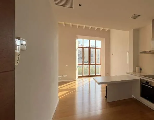 Dieses elegante Studio vereint zeitgenössisches Design, natürliches Licht und eine privilegierte Lage in einer der emblematischsten Gegenden der mallorquinischen Hauptstadt. Mit Holzböden, hohen Decken mit sichtbaren Balken und großen Fenstern vermittelt jede Ecke Großzügigkeit und Wärme, trotz der kompakten Raumaufteilung.
