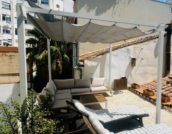 Dieses exklusive Penthouse vereint mediterranen Charme mit modernem Design in unschlagbarer Lage. Auf 120 m² bietet es drei Schlafzimmer, zwei Badezimmer sowie eine spektakuläre private Dachterrasse mit Außendusche und Lounge-Bereich – der perfekte Ort, um in Sonne oder Schatten zu entspannen und gleichzeitig Komfort und Privatsphäre zu genießen.