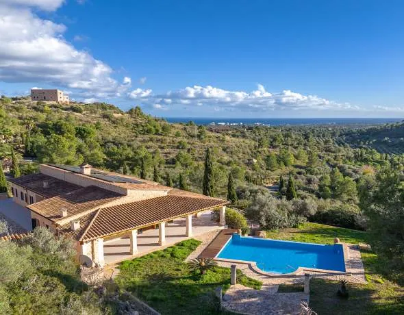 Dieses herrschaftliche Fincaanwesen befindet sich auf einem leicht erhöhten Grundstück in der Nähe des charmanten Ortes Son Macià. Eingebettet in die malerische, mediterrane Landschaft genießen Sie hier vollkommene Ruhe und absolute Privatsphäre. Das Anwesen beeindruckt mit einem traumhaften Panoramablick auf die umliegenden Berge und das Meer.