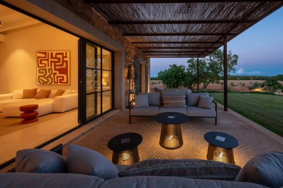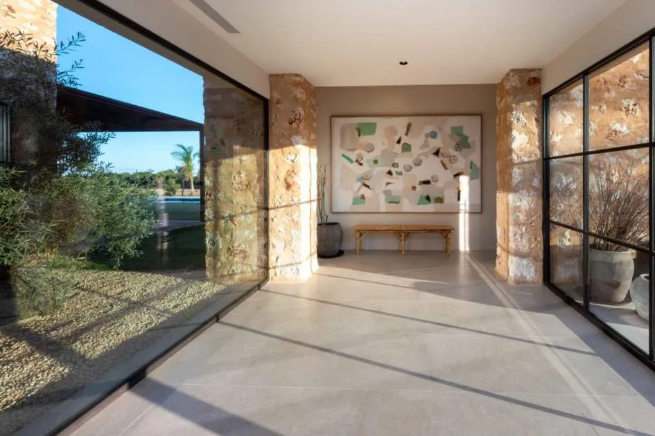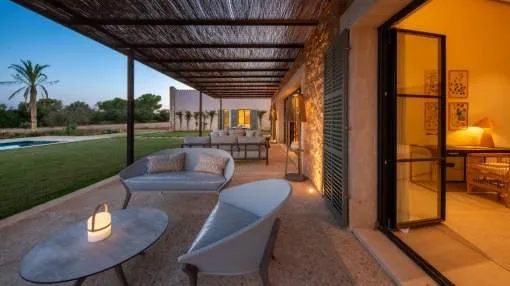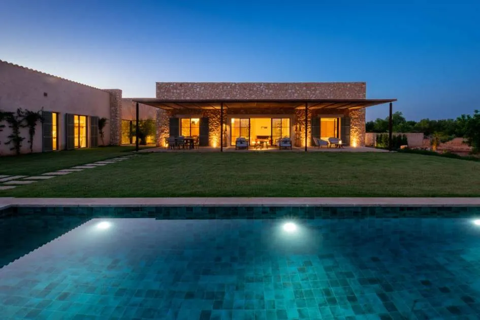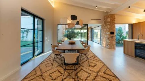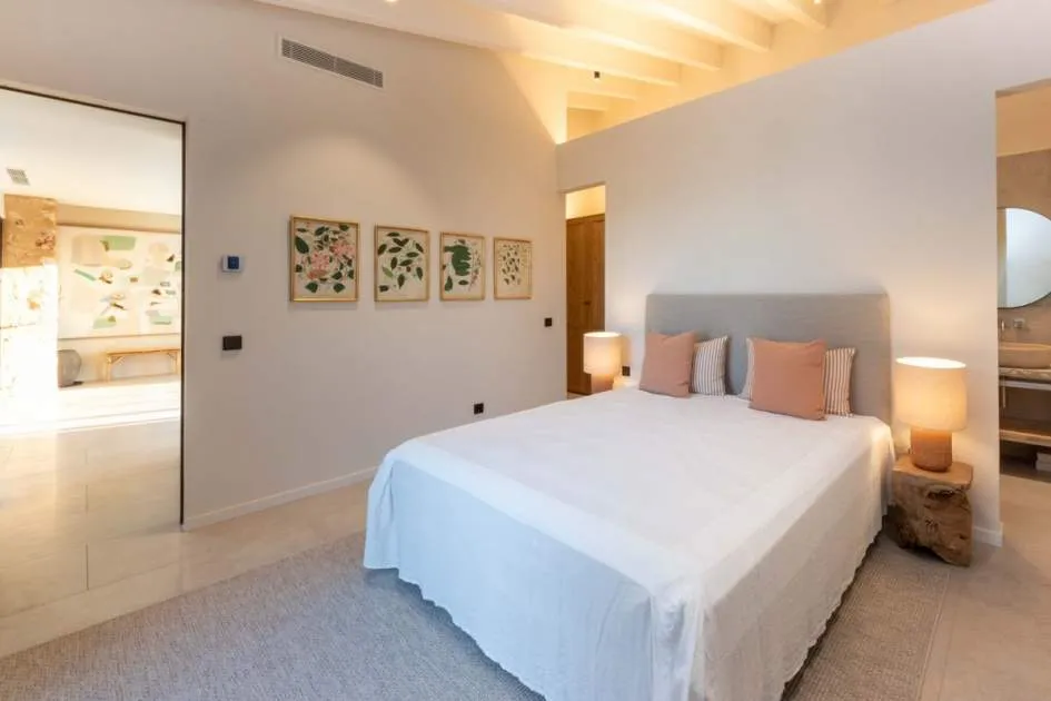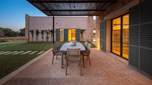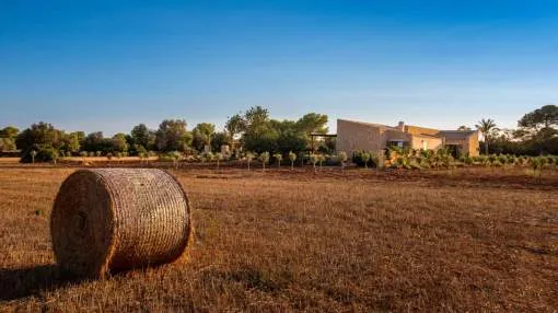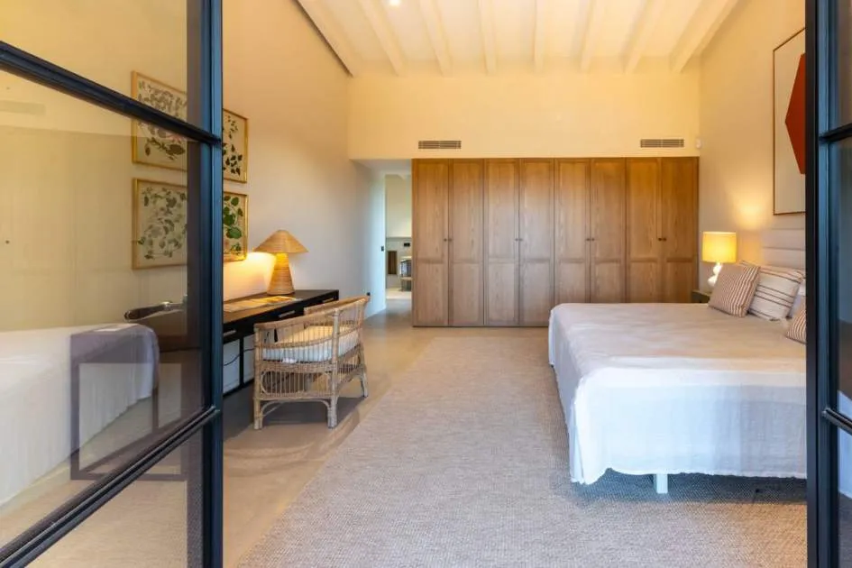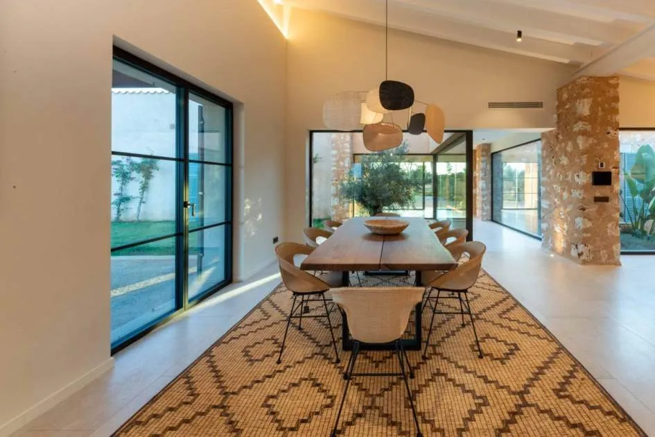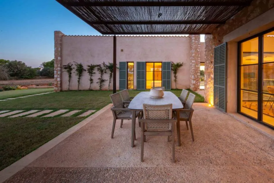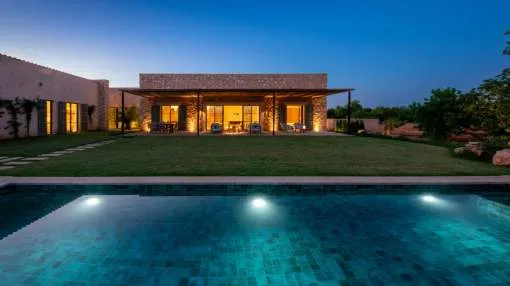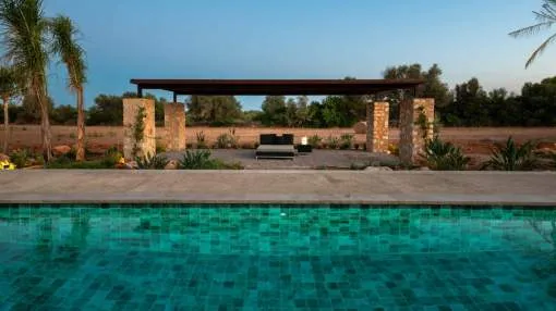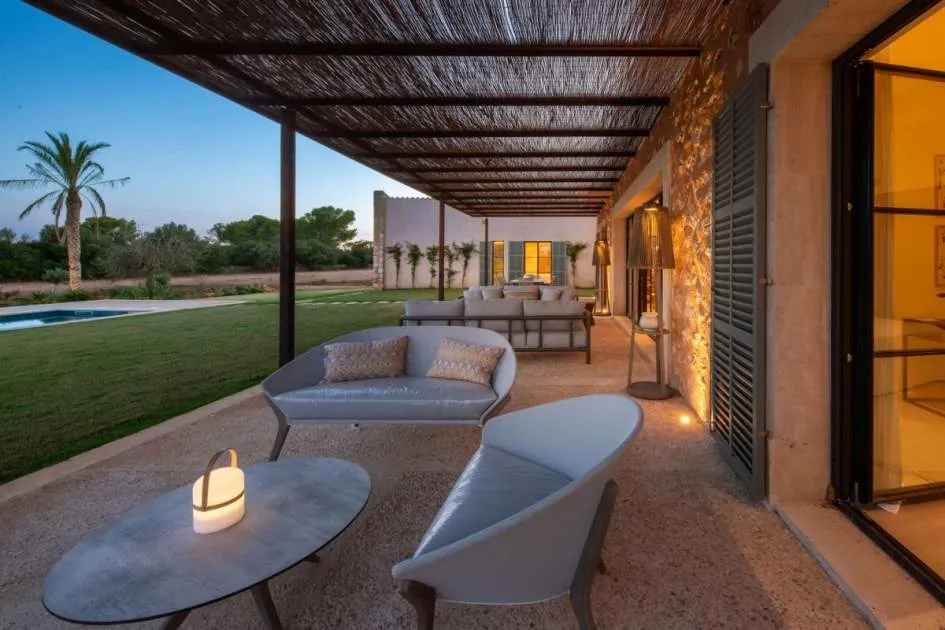 Diese neu erbaute Finca liegt zwischen Sa Ràpita und Campos in der Nähe des Naturparks Es Trenc und verbindet authentischen mallorquinischen Charme mit zeitgenössischem Design und höchsten Baustandards. Auf einem großzügigen Grundstück von 49.000 m² bietet das Anwesen eine bebaute Fläche von ca. 398 m², die durchdacht auf einer Ebene angeordnet ist, um offene, lichtdurchflutete Räume zu schaffen. Die Finca verfügt über vier geräumige Schlafzimmer, jedes mit eigenem Bad, sowie eine Gästetoilette. Das Herzstück des Hauses ist der offene Wohn-, Ess- und Küchenbereich, der nahtlos mit den Terrassen und dem Garten verbunden ist. Ein separater Waschraum und ein Keller mit Abstellräumen und Kellerraum verleihen dem Grundriss zusätzliche Funktionalität und Komfort. Die Master-Suite verfügt über ein eigenes Badezimmer und direkten Zugang zur Terrasse, während die anderen Schlafzimmer in einem separaten Teil des Hauses liegen, um Komfort und Privatsphäre zu gewährleisten. Das Leben im Freien ist ein zentrales Merkmal der Immobilie. Großzügige überdachte Terrassen mit einer Gesamtfläche von 155 m² erweitern den Wohnraum, während angelegte Gärten einen Swimmingpool mit 35 m² Wasserfläche umrahmen, der durch eine Pergola ergänzt wird. Ein schattiger Parkplatz für drei Fahrzeuge vervollständigt die Außenanlagen. Ausgestattet mit modernem Komfort wie einer Wärmepumpe und Fußbodenheizung sorgt die Immobilie für ganzjährigen Komfort. Darüber hinaus bietet sie schnelles Internet mit Starlink. Sie ist geschmackvoll eingerichtet und wird inklusive aller Möbel verkauft.