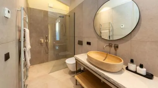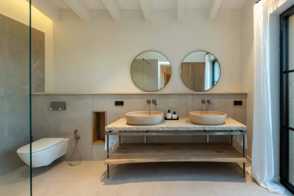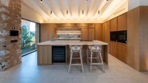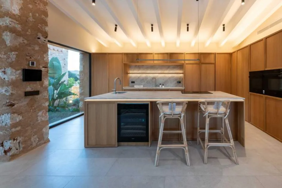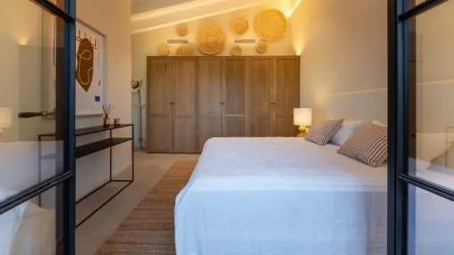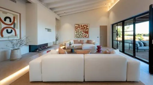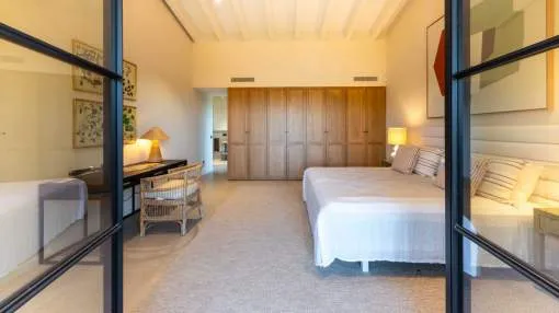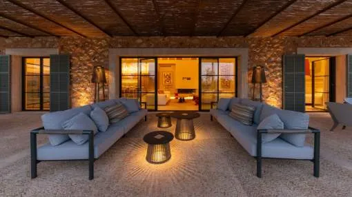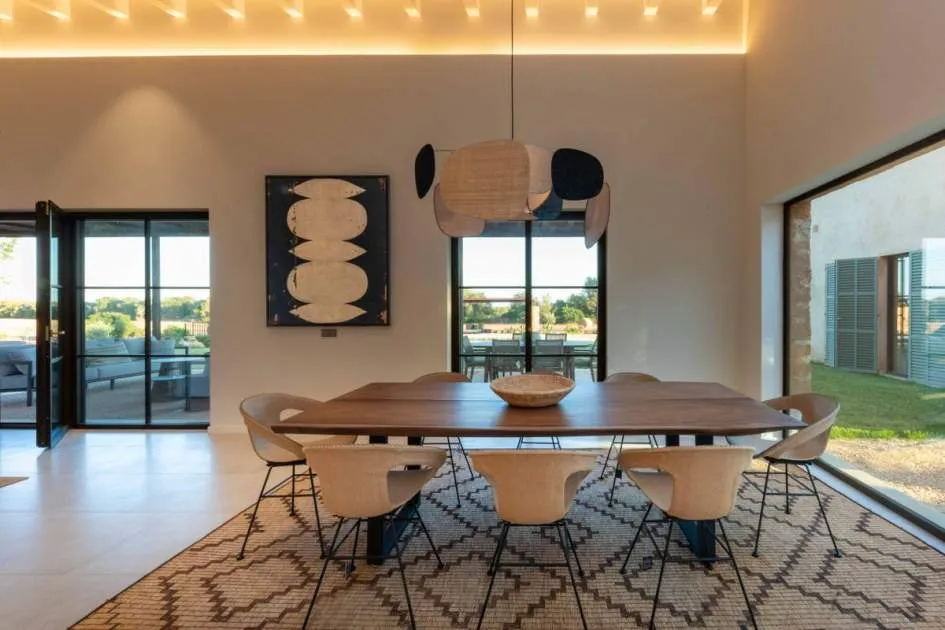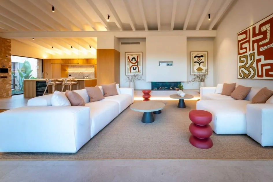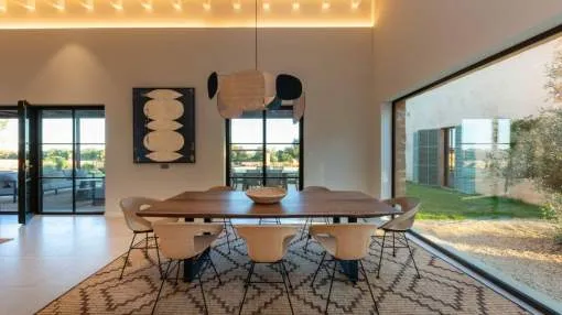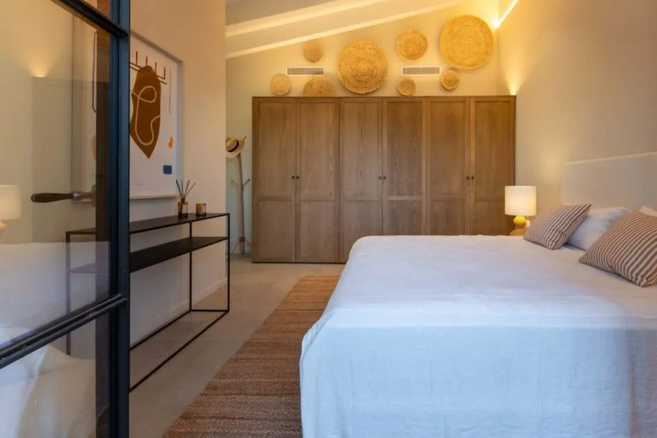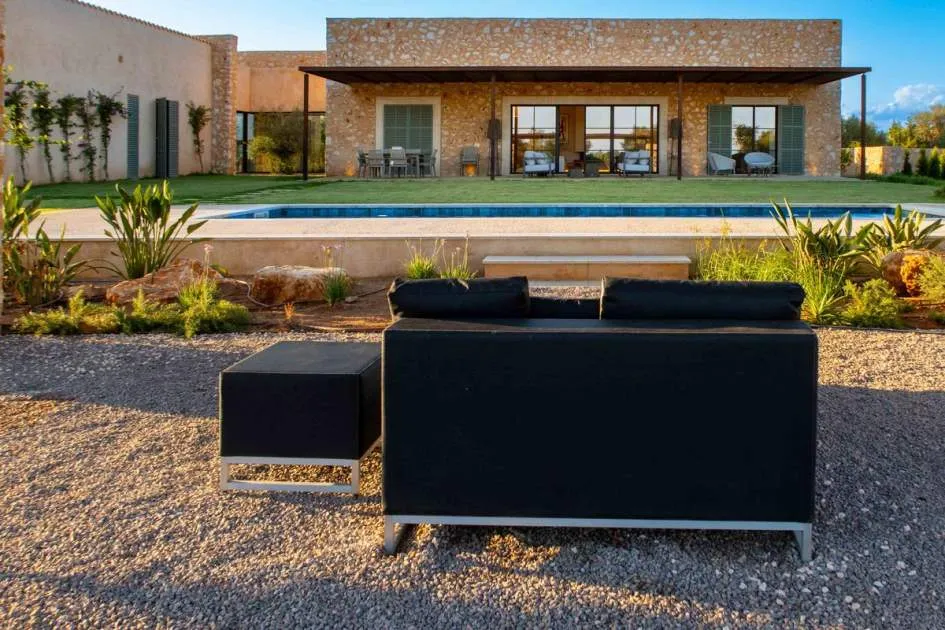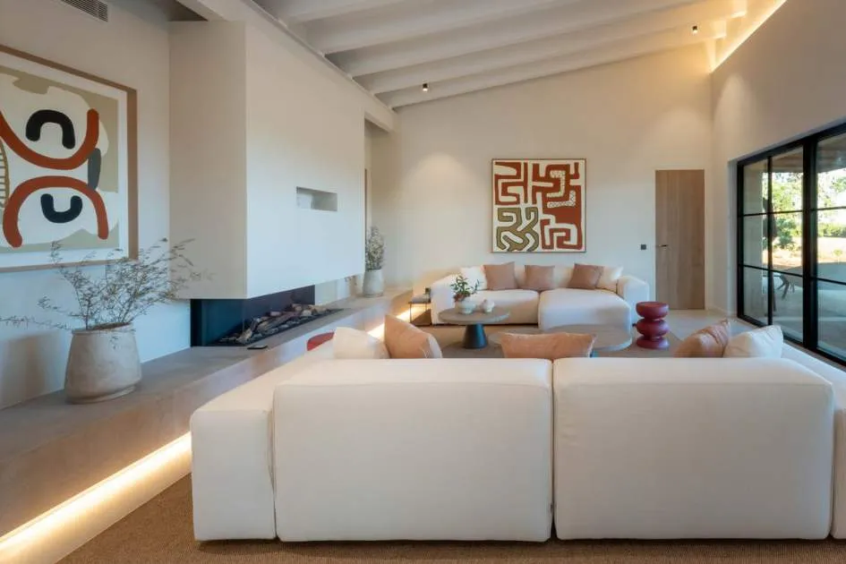 Diese neu erbaute Finca liegt zwischen Sa Ràpita und Campos in der Nähe des Naturparks Es Trenc und verbindet authentischen mallorquinischen Charme mit zeitgenössischem Design und höchsten Baustandards. Auf einem großzügigen Grundstück von 49.000 m² bietet das Anwesen eine bebaute Fläche von ca. 398 m², die durchdacht auf einer Ebene angeordnet ist, um offene, lichtdurchflutete Räume zu schaffen. Die Finca verfügt über vier geräumige Schlafzimmer, jedes mit eigenem Bad, sowie eine Gästetoilette. Das Herzstück des Hauses ist der offene Wohn-, Ess- und Küchenbereich, der nahtlos mit den Terrassen und dem Garten verbunden ist. Ein separater Waschraum und ein Keller mit Abstellräumen und Kellerraum verleihen dem Grundriss zusätzliche Funktionalität und Komfort. Die Master-Suite verfügt über ein eigenes Badezimmer und direkten Zugang zur Terrasse, während die anderen Schlafzimmer in einem separaten Teil des Hauses liegen, um Komfort und Privatsphäre zu gewährleisten. Das Leben im Freien ist ein zentrales Merkmal der Immobilie. Großzügige überdachte Terrassen mit einer Gesamtfläche von 155 m² erweitern den Wohnraum, während angelegte Gärten einen Swimmingpool mit 35 m² Wasserfläche umrahmen, der durch eine Pergola ergänzt wird. Ein schattiger Parkplatz für drei Fahrzeuge vervollständigt die Außenanlagen. Ausgestattet mit modernem Komfort wie einer Wärmepumpe und Fußbodenheizung sorgt die Immobilie für ganzjährigen Komfort. Darüber hinaus bietet sie schnelles Internet mit Starlink. Sie ist geschmackvoll eingerichtet und wird inklusive aller Möbel verkauft.