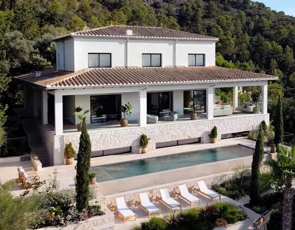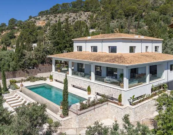 Diese stilvoll sanierte Villa befindet sich in erhöhter, ruhiger Lage am Fuße des Tramuntana-Gebirges bei Bunyola und bietet einen spektakulären Weitblick über die Bucht von Palma und die Berge. Trotz der idyllischen Ruhe genießt man eine ausgezeichnete Anbindung: Palma ist nur 15 Minuten entfernt, ebenso wie die charmanten Orte Valldemossa und Sóller. Die exklusive Wohngegend Sa Font Seca, Teil des UNESCO-Weltkulturerbes, ist bekannt für Privatsphäre, Naturverbundenheit und hochwertige Immobilien. Die Umgebung bietet zahlreiche Freizeitmöglichkeiten wie Reit- und Radwege sowie nahegelegene Golfplätze, darunter der Son Termes Golf Club direkt in der Nähe. Internationale Schulen sind in etwa 20 Minuten erreichbar.