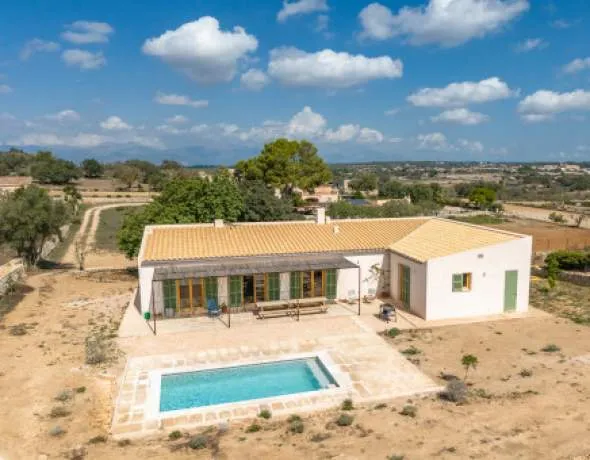 Objektbeschreibung: Nur wenige Minuten vom Zentrum Lloret de Vistalegre entfernt, bietet diese charmante Finca das perfekte Zusammenspiel von Natur und Komfort. Auf einem weitläufigen, naturbelassenen Grundstück gelegen, finden Sie hier Ruhe und Privatsphäre in einer idyllischen Umgebung. Das Herzstück der Finca ist der großzügige Wohn- und Essbereich, der durch seine offene Gestaltung mit der modernen Küche harmoniert. Ein Kamin sorgt für eine gemütliche Atmosphäre, ideal für entspannte Abende. Die Finca verfügt über 3 Schlafzimmer, darunter ein Hauptschlafzimmer mit Badezimmer en Suite. Ein weiteres geräumiges Badezimmer sowie ein Gäste-WC stehen ebenfalls zur Verfügung. Die große, überdachte Terrasse bietet den perfekten Ort zum Entspannen und führt direkt zu einem einladenden Salzwasser-Pool, umgeben von der Schönheit der Natur. Diese Finca ist ein Rückzugsort, der sowohl Entspannung als auch Nähe zum charmanten Dorf von Lloret verbindet. Diese Immobilie bietet Ihnen einen Pelletofen sowie Elektroheizung für wohlige Wärme, Klimaanlage warm/kalt, hochwertige Doppelverglasung für optimale Isolierung, Alarmanlage sowie einen Brunnen und Anschluss an das Stadtstromnetz. Die Pool- und Gartenpflege sind im Mietpreis inkludiert. Die Kosten für Strom und Internet müssen vom Mieter übernommen werden. Lage & Umgebung: Lloret de Vista Alegre ist ein kleines und idyllisches Dorf, nicht weit von Sineu in der Inselmitte entfernt. Sehr ursprünglich, gehört zum Gemeindegebiet von Sineu.