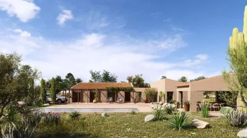 KartenansichtIdyllisch gelegenes Finca-Baugrundstück mit ebenerdigem Ausführungsprojekt zwischen Petra und Sant Joan
