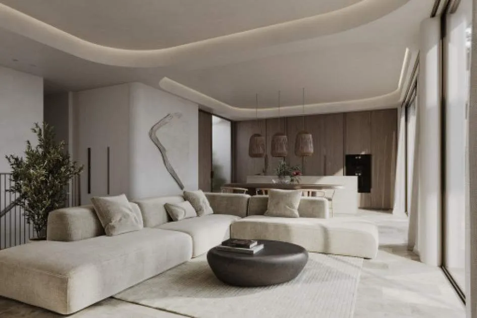 Objektbeschreibung: In der begehrten Wohnlage San Agustin, nur wenige Minuten vom Zentrum Palmas und dem Yachthafen Cala Nova entfernt, entsteht dieses exklusive Neubauprojekt mit Resort-Flair und nur 5 luxuriösen Wohneinheiten – 2 weitläufige Garten-Apartments mit eigenem Garten sowie 3 luxuriöse Duplex-Penthouses mit privaten Dachterrassen und atemberaubendem Meerblick-ideal für alle, die Privatsphäre, Stil und höchsten Wohnkomfort in Meeresnähe suchen. Eingebettet in eine tropische Gartenlandschaft und mit traumhaftem Blick auf das Mittelmeer, vereint dieses Projekt mediterrane Leichtigkeit mit zeitloser Eleganz. Hochwertige Naturmaterialien wie Stein und Holz, maßgeschneiderte Designer-Küchen, raumhohe Schiebetüren und feinste Marmorböden schaffen ein edles Wohnambiente, das Ruhe und Luxus perfekt miteinander verbindet. Das hier angebotene Duplex-Penthouse beeindruckt mit einer Wohnfläche von 212 qm, einem offenen Wohn- und Essbereich mit Gaskamin, 3 Schlafzimmern, 3 Bädern (zwei davon en suite) sowie einem Gäste-WC. Die Terrasse auf der Wohnebene (19 qm) erweitert den Wohnraum nach außen, während die private Dachterrasse mit 68 qm einen spektakulären 180°-Panoramablick auf das Meer und die umliegende Hügellandschaft bietet – perfekt für stilvolle Abende unter freiem Himmel. Ein privater Aufzug bringt Sie direkt aus der Tiefgarage (2 Stellplätze + Abstellraum inklusive) in Ihr Penthaus – für maximalen Komfort und Diskretion. Fußbodenheizung, zentrale Klimaanlage über Luft-Wärmepumpe, Smart-Home-Technologie, ein Gemeinschaftspool mit großzügiger Sonnenterrasse und üppig begrünte Gartenbereiche sowie ein voll ausgestatteter, klimatisierter Fitnessraum runden dieses außergewöhnliche Angebot ab. Die Fertigstellung ist für Ende 2027 geplant. Weitere Einheiten dieses Projekts: Objekt-Nr.KonstruktionsflächeSchlafzimmerEtagePreis122394359 m²33€ 4.250.000,- 122394A270 m²30€ 2.125.000,- 122394B329 m²30€ 3.485.000,- 122394C221 m²30€ 2.225.000,- Lage & Umgebung: Im Küstengebiet San Agustín hat man das ganze Jahr über das Gefühl im Urlaub zu sein. Der Nachbarsbezirk von Cala Mayor besitzt eine traumhafte Lage am Mittelmeer, nur 15 Autominuten westlich von Mallorcas Hauptstadt. Das ruhige Viertel zieht sowohl Touristen als auch Anwohner, die in den umliegenden Gebieten arbeiten, wegen seiner ausgezeichneten Verbindungen zur Stadt Palma, zum Flughafen, sowie zum Südwesten der Insel an. Hier finden Sie alle Annehmlichkeiten in nächster Nähe, beispielsweise den minimalistischen und beliebten Zhero Beach Club, ein gutes Fitnessstudio, viele Geschäfte und eine Apotheke. Außerdem verfügt es über alle Arten von Restaurants mit lokaler und internationaler Küche, die einen ausgezeichneten Blick auf das Meer bieten. Ganz in der Nähe befindet sich der Club Nautico de Cala Nova, der für seine Segel- und Kitesurf-Kurse berühmt ist. San Agustín besteht hauptsächlich aus Mehrfamilienhäusern, von denen die meisten aufgrund der erhöhten Lage des Gebietes eine gute Aussicht auf das Mittelmeer bieten. Die meisten Wohnungen verfügen über einen Gemeinschaftspool und -garten.