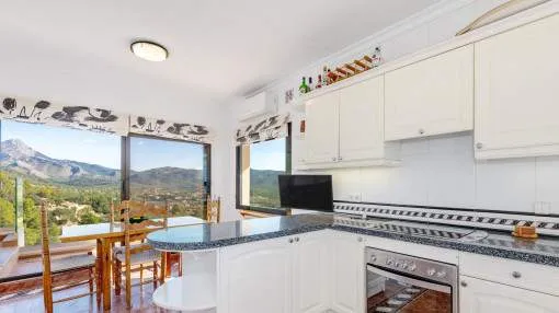 Objektbeschreibung: Versteckt zwischen sanften Hügeln und üppiger Natur liegt dieses einmalige Haus in dem malerischen Dorf Es Capdellà. Nur einen Katzensprung vom exklusiven Port d'Andratx und der traumhaften Südwestküste Mallorcas entfernt, vereint dieser charmante Ort Ruhe, Authentizität und mediterranen Lebensstil. Die unvergleichliche 360-Grad-Aussicht entfaltet sich von den imposanten Gipfeln der Gebirgskette über das lebendige Grün der umliegenden Wälder bis hin zum malerischen Dorf und der glitzernden Bucht von Camp de Mar und Paguera. Diese außergewöhnliche Kulisse lädt dazu ein, auf den Terrassen innezuhalten und den Moment zu genießen. Die Immobilie bedarf einer umfassenden Renovierung, doch ihre vielfältigen Gestaltungsmöglichkeiten, die großzügigen Außenbereiche sowie der inspirierende Weit- und Meerblick bieten ein außergewöhnliches Potenzial für kreative Visionen und die Verwirklichung persönlicher Wohnträume. Mit einer großzügigen Wohnfläche von 214,45 qm bietet dieses Zuhause vier Schlafzimmer und vier Badezimmer, zwei davon en Suite. Die Küche ist vollständig ausgestattet. Das Wohn- und Esszimmer zeichnet sich durch großzügigen Lichteinfall und Blick auf die Bucht aus. Der Gemeinschaftspool bietet zusätzlichen Komfort und lädt zum Entspannen und Verweilen unter der Sonne Mallorca's ein. Rendite aus Ferienvermietung: Mit dem „Porta Holiday Renditerechner“ können Sie zur ersten Orientierung unverbindlich Ihre potenziellen Einnahmen aus einer möglichen Ferienvermietung berechnen. Hinweis: Aufgrund der aktuellen Gesetzeslage kann es in bestimmten Gemeinden zu einer Beschränkung der Vermietbarkeit kommen bzw. werden keine neuen touristischen Lizenzen mehr vergeben. Ihr Porta Mallorquina Immobilienberater berät Sie gerne, ob die von Ihnen gewählte Immobilie davon betroffen ist. Hier geht’s zum Renditerechner. Lage & Umgebung: Es Capdellà ist ein kleiner Ort mit 1000 Einwohnern, der zur Gemeinde Calvià gehört. Er liegt am Fuß des Tramuntana-Gebirges, 115 m über dem Meeresspiegel, mit Blick auf den Puig de Galatzó (1027 m) und hat sich den Charme der vergangenen Zeiten erhalten können. Gegründet wurde er Ort im 17. Jahrhundert. Es Capdella ist aufgrund seiner besonderen Lage ein kleiner Geheimtipp. Zwischenzeitlich haben hier Individualisten, vornehmlich Deutsche und Engländer, erkannt, was der Ort und die Gegend zu bieten haben und sich hier niedergelassen. Zu erwähnen sind auch die Bar Nou und Es Moli, zwei zentrale Treffpunkte im Ort mit mallorquinischer Küche, die auch auf Touristen eine hohe Anziehungskraft ausüben. Landschaftlich auch besonders schön sind die Bergstrecken von Capdella nach Puigpunyent über Galilea sowie nach Andratx und Paguera. Es Capdella liegt nur wenige (6-8) km von der Küste entfernt, wo lange Sandstrände und schöne Buchten zum Baden einladen. Hier bietet sich eine große Vielfalt an Aktivitäten sowie eine sehr gute Infrastruktur. Palma ist in ca. 15 Min. zu erreichen, der Flughaben in 20-25 Minuten.