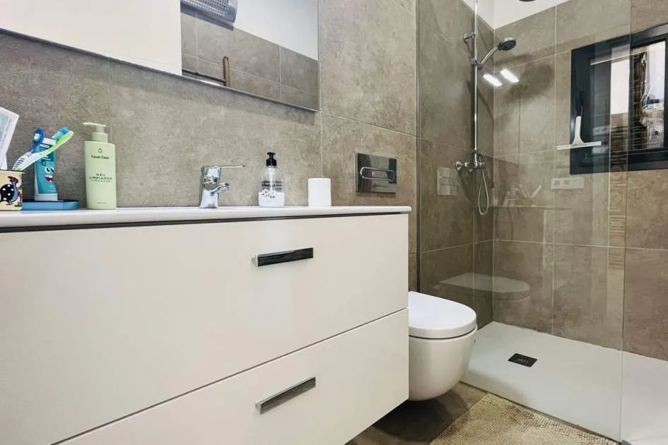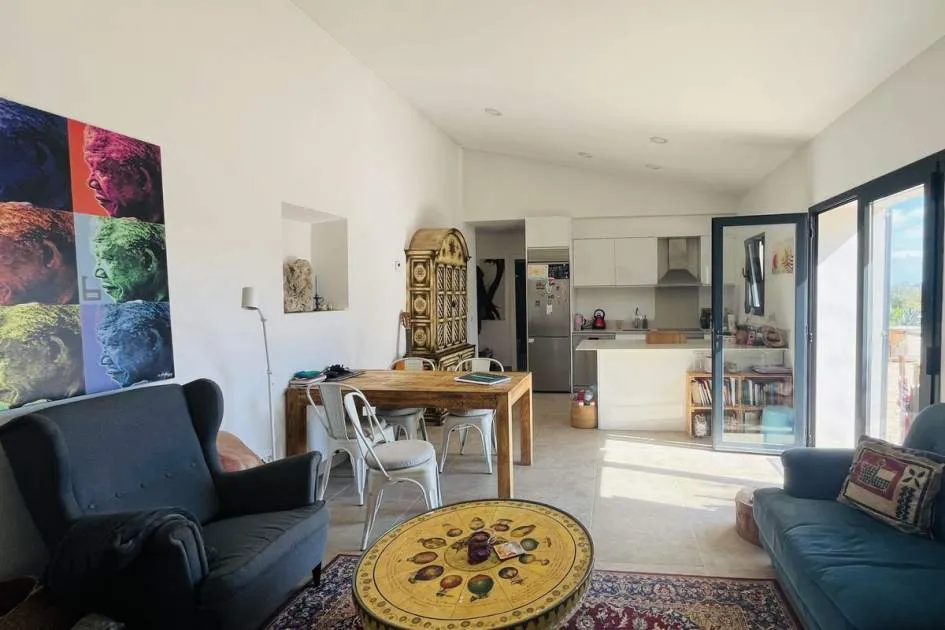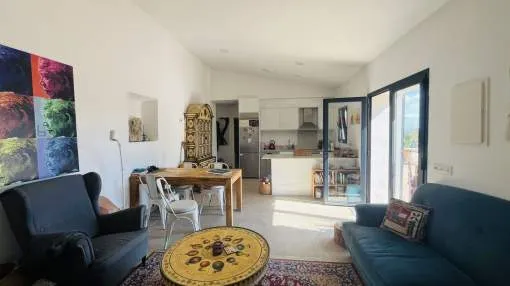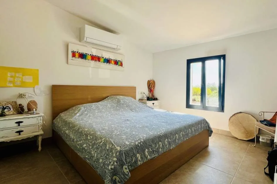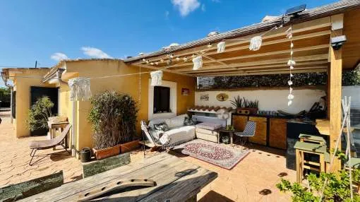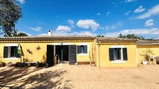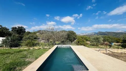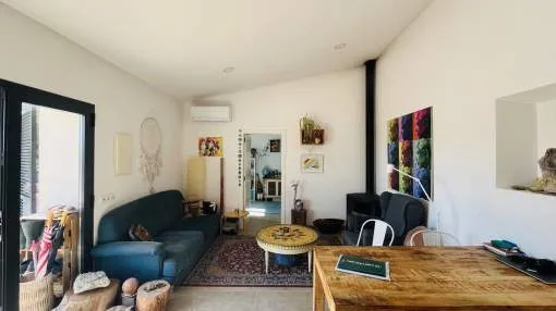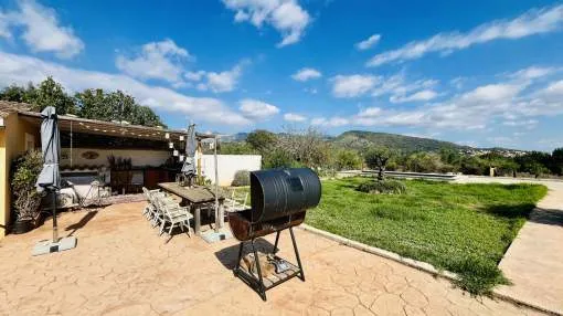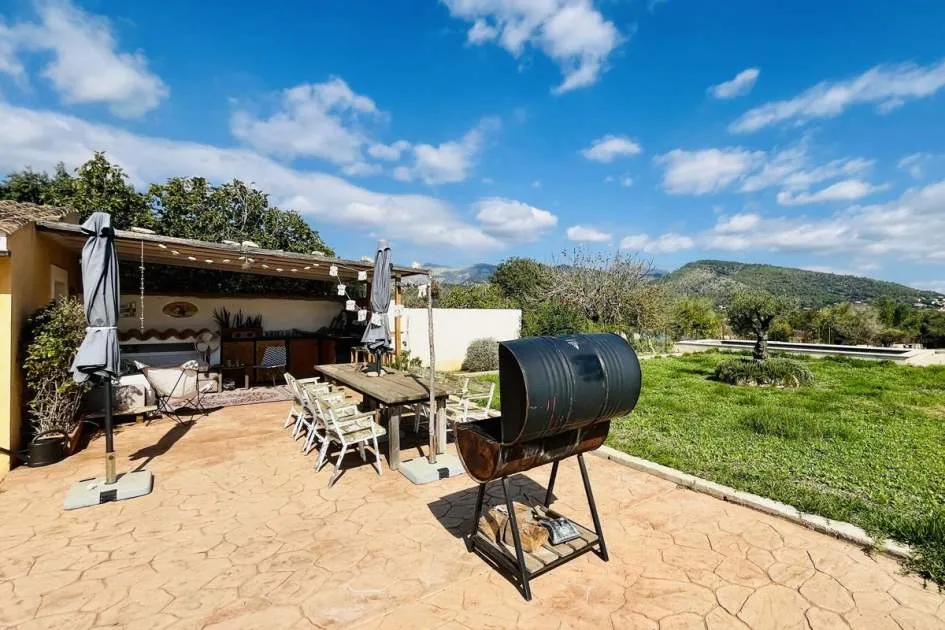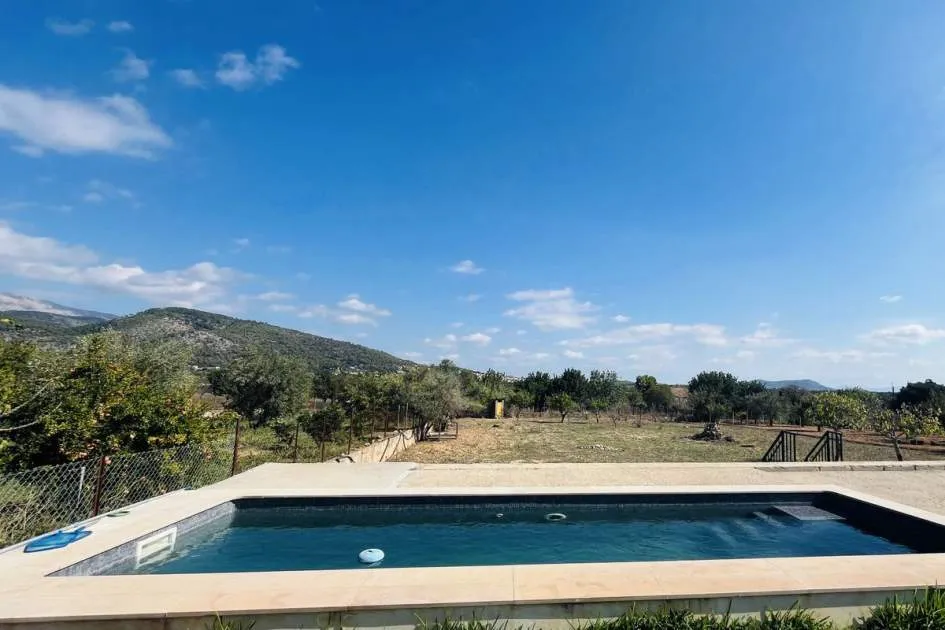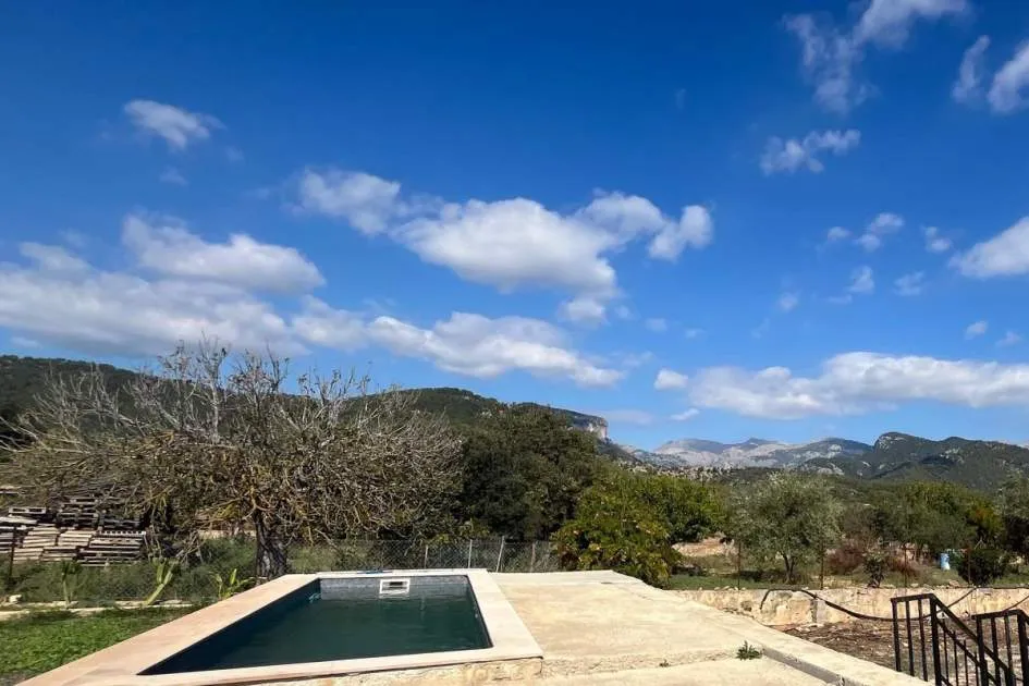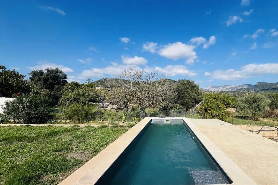 Entdecken Sie dieses bezaubernde Landhaus, das Ihnen Freiheit und Privatsphäre inmitten einer atemberaubenden Aussicht auf die Sierra de Tramuntana bietet, die von der UNESCO zum Weltkulturerbe erklärt wurde. Das Anwesen liegt am Rande des malerischen Dorfes Binissalem, das für seine Weintradition und sein authentisches mallorquinisches Landleben bekannt ist, und verbindet modernen Komfort mit dem Charme des Landlebens. Das 2019 komplett renovierte Haus hat eine Wohnfläche von 63 m², die praktisch und gemütlich auf zwei Schlafzimmer, ein komplettes Badezimmer, ein helles Wohnzimmer und eine offene Küche verteilt sind. Im Außenbereich besticht eine großzügige Terrasse von ca. 300 m², die sich perfekt eignet, um die Sonne und die Ruhe der Umgebung zu genießen. Das Anwesen verfügt außerdem über einen attraktiven privaten Pool von 7,5 x 3,5 Metern, ideal, um sich in den Sommermonaten zu erfrischen, umgeben von Platz für Liegestühle, einem Essbereich im Freien und einem Chill-out-Bereich, der von einem prächtigen hundertjährigen Olivenbaum beschattet wird. Das Anwesen befindet sich auf einem vollständig umzäunten Grundstück und bietet Privatsphäre und vielfältige Möglichkeiten, einen individuellen mediterranen Garten, einen Gemüsegarten oder sogar einen kleinen Anbaubereich anzulegen. Nur 22 Autominuten von Palma entfernt, eignet sich diese Immobilie perfekt als Hauptwohnsitz, Ferienhaus oder ländliche Investition. Die Stadt Inca mit allen Arten von Dienstleistungen, Restaurants und Supermärkten ist nur wenige Autominuten entfernt. Die Anfahrt ist bequem und die Lage verbindet das Beste des ruhigen Landlebens mit der Nähe zu allen Dienstleistungen. Gerne organisieren wir einen persönlichen Besichtigungstermin, damit Sie die Immobilie persönlich erkunden und alle Details entdecken können, die diese Immobilie zu einer einzigartigen Gelegenheit machen.