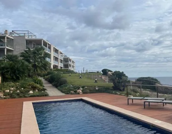 Diese luxuriöse und absolut ruhige Wohnung befindet sich im Erdgeschoss der exklusiven und gut gepflegten Wohnanlage „Cap Blau”. Sie hat zwei Schlafzimmer und ein Wohnzimmer, allesamt mit direktem Meerblick. Es gibt zwei Badezimmer, eines davon verfügt über eine Wellnessdusche, das andere hat eine Badewanne.
