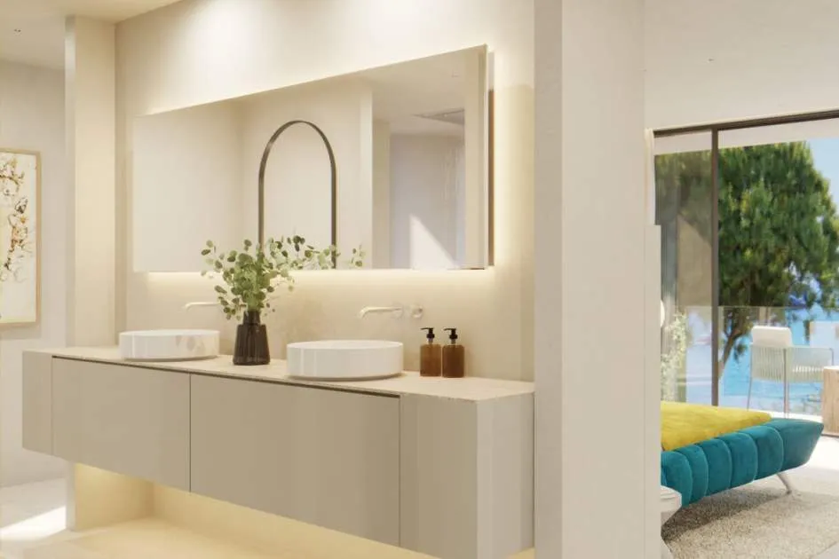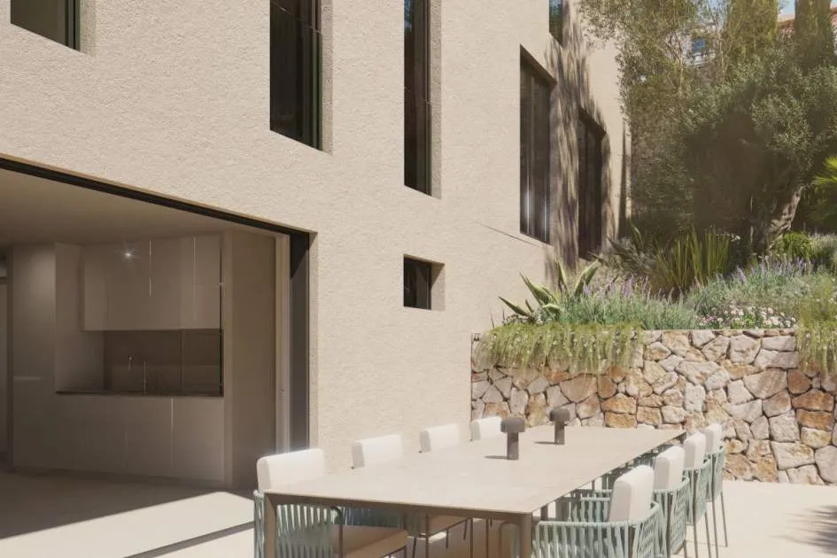 Diese außergewöhnliche moderne Villa in Santa Ponça ist ein wahres Meisterwerk zeitgenössischer Architektur und mediterraner Eleganz. Mit einer bebauten Fläche von 777 m² wurde die Immobilie vollständig nach höchsten Standards renoviert und bietet überall reichlich Licht, Großzügigkeit und Komfort. Ihre erhöhte Lage ermöglicht einen herrlichen Blick auf das Meer, während die angelegten Gärten ringsum Privatsphäre und Ruhe garantieren. Im Inneren empfängt die Villa mit einem großzügigen offenen Grundriss, bei dem raumhohe Fenster eine nahtlose Verbindung zwischen Innen- und Außenbereichen schaffen. Wohn- und Essbereiche gehen harmonisch in eine Designer-Küche über, ausgestattet mit modernster Technik und mit viel Liebe zum Detail vollendet. Die vier Schlafzimmer mit eigenem Bad sind großzügig geschnitten, jedes mit eigenem Badezimmer und Ankleidebereich, konzipiert, um sowohl Luxus als auch Privatsphäre zu gewährleisten. Insgesamt verfügt die Villa über sechs elegante Badezimmer, alle mit hochwertigen Ausstattungen, die Stil und Funktionalität vereinen. Das Leben im Freien steht im Mittelpunkt dieser Immobilie. Weitläufige Terrassen laden dazu ein, die mallorquinische Sonne das ganze Jahr über zu genießen, während sich der Infinity-Pool perfekt in die Architektur und Gartengestaltung einfügt. Umgeben von Natursteinmauern, mediterraner Bepflanzung und schattigen Lounge-Bereichen ist die Poolterrasse der ideale Ort zum Entspannen oder für gesellige Stunden mit Gästen. Die Lage der Immobilie in Santa Ponça bietet die perfekte Balance zwischen Ruhe und Komfort. In nur wenigen Minuten erreicht man exklusive Yachthäfen, gehobene Restaurants, internationale Schulen und einige der besten Golfplätze der Insel. Die Villa eignet sich gleichermaßen als ständiger Wohnsitz wie auch als luxuriöser Feriensitz und verbindet Privatsphäre mit der Nähe zu allen Annehmlichkeiten. Mit ihrer beeindruckenden Architektur, den hochwertigen Ausstattungen und der beneidenswerten Lage an Mallorcas Südwestküste stellt diese Villa eine seltene Gelegenheit dar, ein wirklich herausragendes Anwesen zu erwerben.