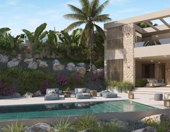 Die Immobilie wurde mit viel Liebe zum Detail entworfen und verbindet zeitgenössische Architektur mit hochwertigen Naturmaterialien, darunter maßgefertigte Walnussholzarbeiten, die jedem Raum Wärme und Raffinesse verleihen. Große, raumhohe Fenster maximieren das natürliche Licht und rahmen den ungestörten Blick auf das Mittelmeer ein, während die Südausrichtung das ganze Jahr über für sonnendurchflutete Innenräume sorgt.