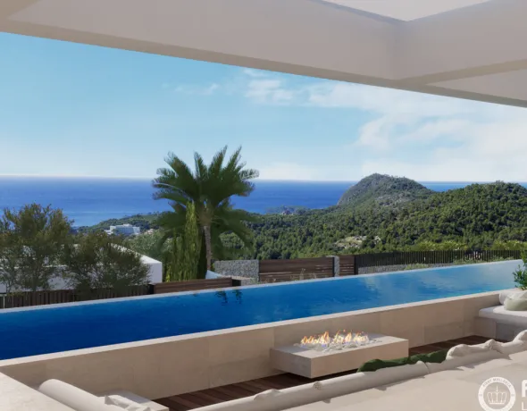 Diese beeindruckende Neubauvilla befindet sich in erhöhter und ruhiger Lage in Paguera und bietet von jedem Raum aus atemberaubende Ausblicke auf das Meer und die Bucht von Camp de Mar. Ein außergewöhnlicher Patio erstreckt sich über drei Ebenen und verfügt über ein sanft plätscherndes Wasserspiel, das für eine entspannte Atmosphäre sorgt. Die stilvolle Bodega fungiert zugleich als Weinparadies, Raumteiler und Design-Highlight.