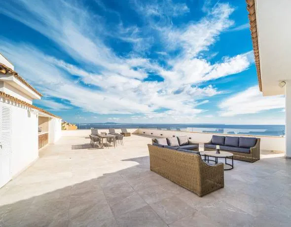 Dieses außergewöhnliche, hochwertig renovierte Penthaus befindet sich in der exklusiven Wohngegend von Illetas, nur wenige Schritte vom Strand entfernt. In zweiter Meereslinie gelegen, genießt man hier einen herrlichen Panoramablick über das Meer und die Küste. Geschäfte, Restaurants und Cafés sind fußläufig erreichbar, und bis zum Yachthafen Puerto Portals sowie dem königlichen Golfplatz von Bendinat sind es nur wenige Autominuten.