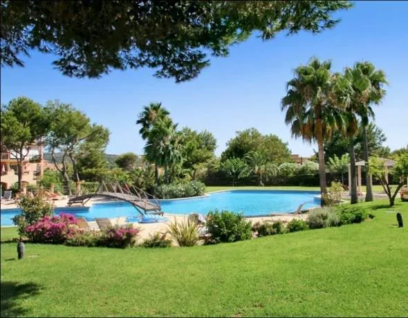 Elegantes Apartment in erstklassiger Wohnanlage neben den Golfplätzen in Nova Santa Ponsa, Südwesten Mallorcas. Die Wohnanlage rechnet mit nur 42 Apartments in 3 Gebäuden, was es erlaubt, sie als Oase des Friedens und der Ruhe zu bezeichnen. Die Anwohner und Ihre Gäste profitieren vom eingegrenzten weitläufigen Gelände, welches einen Swimmingpool im Lagunen-Stil umgeben von wundervollen tropischen Gärten bietet.