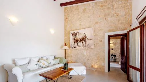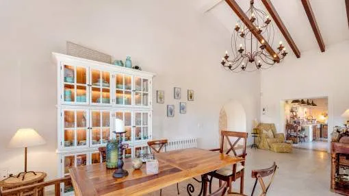 Diese legale Steinfinca zwischen Campos und Felanitx ist mehr als ein Haus – sie ist ein Lebensgefühl. Umgeben von 23.000 m² unberührter Natur, eröffnet sich ein Refugium, das historische Seele mit zeitgemäßem Luxus verbindet. Der Blick auf das Kloster Sant Salvador wirkt wie ein Gemälde, das sich täglich neu inszeniert.