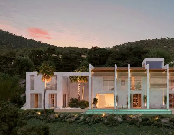 Dank der großformatigen Fenster, die den Innenraum in einen offenen, eleganten und gemütlichen Raum verwandeln, wird jeder Raum von natürlichem Licht durchflutet. Die Villa erstreckt sich über zwei Etagen plus Keller und bietet 4 luxuriöse Schlafzimmer, alle mit eigenem Bad, sowie ein spektakuläres offenes Wohnzimmer mit integriertem Essbereich und Designerküche. Vom Hauptgeschoss aus gelangt man dank der direkten Zugänge zu den Terrassen leicht ins Freie, wo Sie großzügige Außenbereiche und ein traumhafter Pool erwarten, um den besten mediterranen Lebensstil zu genießen.