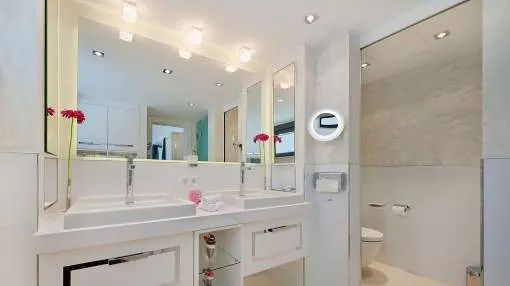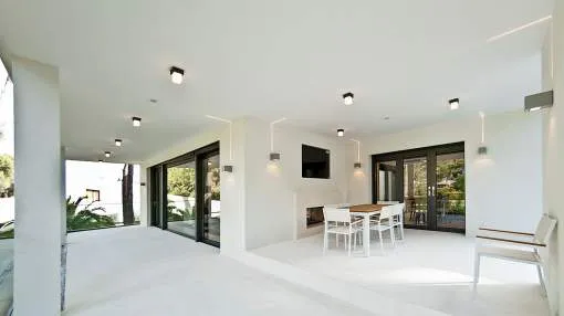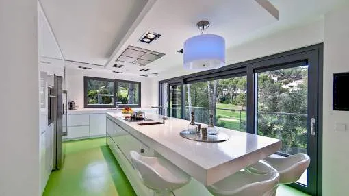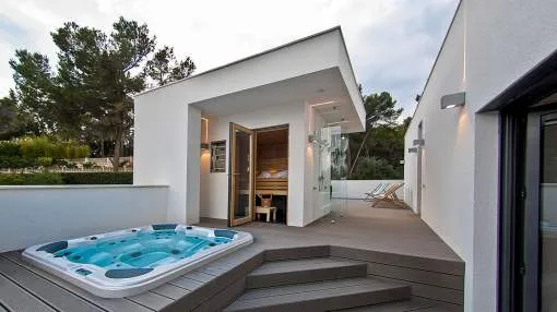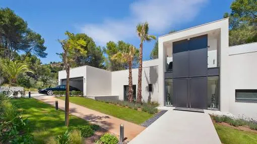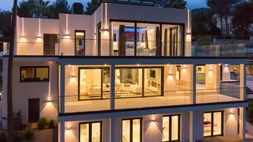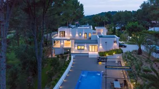In einer der exklusivsten Wohnlagen Mallorcas, direkt am renommierten Golfplatz Son Vida, befindet sich diese moderne Luxusvilla auf einem ca. 2.000 m² großen Grundstück mit viel Privatsphäre. Die Immobilie bietet zeitgemäßen Wohnkomfort, elegante Ausstattung und modernste Haustechnik.