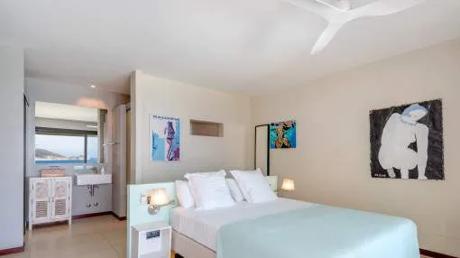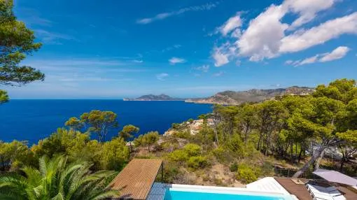 Diese außergewöhnliche Villa thront in einer der exklusivsten Lagen von Port d’Andratx und öffnet den Blick auf ein endloses Panorama über das offene Meer. Hier erleben Sie magische Sonnenuntergänge, die jeden Abend zu einem unvergesslichen Schauspiel machen – eingebettet in absolute Ruhe und vollkommene Privatsphäre.