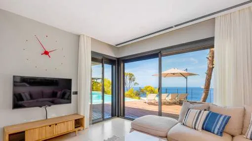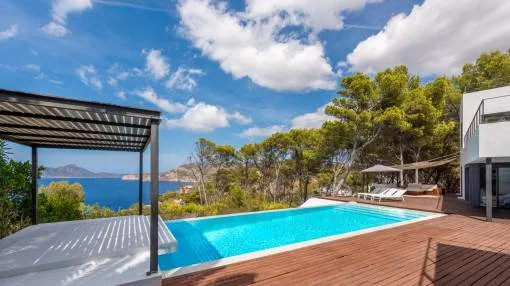 Luxusvilla mit spektakulärem Meerblick und Privatsphäre auf La Mola – zur temporären Miete.