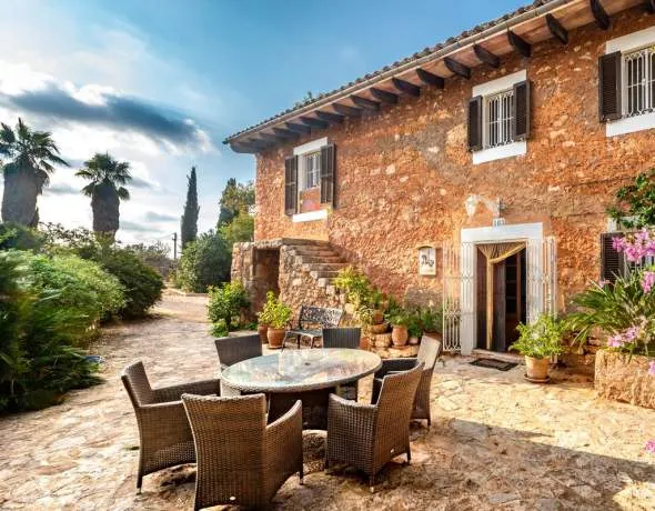 Diese traditionelle Finca liegt nahe dem Weiler Son Mesquida inmitten einer idyllischen Landschaft auf einem 10.127 m² großen Grundstück, umgeben von landesüblichen Steinmauern.