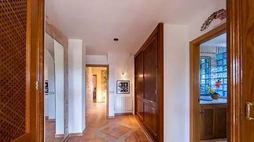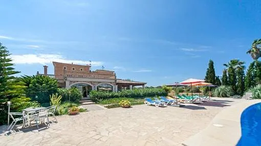 Objektbeschreibung: Diese mit Naturstein verkleidete Finca befindet sich in einer sehr ruhigen Gegend am Rande von Campos. Auf dem 14.000 qm großen, komplett mit Steinwänden umfriedeten Grundstück befindet sich diese Finca mit einer bebauten Fläche von 811 qm. Das Haus hat 3 Stockwerke. Im Erdgeschoss befindet sich der Eingangsbereich, das Wohnzimmer, Esszimmer, Küche, 2 Doppelschlafzimmer und 2 Badezimmer. Die erste Etage beherbergt 3 Schlafzimmer mit Badezimmer en Suite und Ankleide, eine geräumige Terrasse von der aus man einen Panoramablick genießen kann und in der zweiten Etage gibt es 2 Schlafzimmer, ein Badezimmer und einen Fitnessraum, ideal für Kinder. Alle Fenster sind aus PVC und doppelt verglast. In der kälteren Jahreszeit verbreiten eine Klimaanlage und ein Ofen angenehme Wärme. Des Weiteren gibt es eine Alarmanlage. Der Außenbereich besticht durch den pflegeleichten Garten mit Pool, Rasen und mediterranen Pflanzen. Es besteht die Möglichkeit diesen weiter auszugestalten, wobei der neue Eigentümer seiner Kreativität freien Lauf lassen kann. Rendite aus Ferienvermietung: Mit dem „Porta Holiday Renditerechner“ können Sie zur ersten Orientierung unverbindlich Ihre potenziellen Einnahmen aus einer möglichen Ferienvermietung berechnen. Hinweis: Aufgrund der aktuellen Gesetzeslage kann es in bestimmten Gemeinden zu einer Beschränkung der Vermietbarkeit kommen bzw. werden keine neuen touristischen Lizenzen mehr vergeben. Ihr Porta Mallorquina Immobilienberater berät Sie gerne, ob die von Ihnen gewählte Immobilie davon betroffen ist. Hier geht’s zum Renditerechner. Lage & Umgebung: Das Landstädtchen Campos im Südosten der Insel liegt verkehrstechnisch günstig auf halbem Weg zwischen Llucmajor und Santanyí. Umgeben von weitläufigen, landwirtschaftlich genutzten Flächen bietet es zahlreiche Geschäfte für den täglichen Bedarf, Restaurants und Sporteinrichtungen. Von dem schon seit dem Mittelalter bestehenden Ort stehen heute nur noch einige Wehrtürme, heutzutage ist Campos eine lebendige Kleinstadt, die vor allem an den Markttagen zahlreiche Besucher anlockt. Der berühmte, lange Sandstrand von Es Trenc mit seinen Dünen und türkisblauem Meer gehört zur Gemeinde Campos und bietet Badefreuden mit karibischem Flair. Den Flughafen erreichen Sie in 25 Minuten, die Inselhauptstadt Palma liegt rund 35 km entfernt.