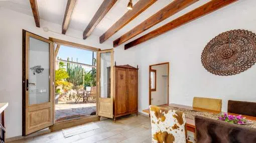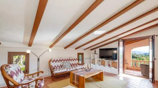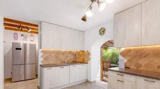 Objektbeschreibung: Diese charaktervolle, mediterrane Finca mit Terrassen rund ums Haus und Pool liegt auf ca. 28.600 qm im geschützten ANEI-Gebiet am nördlichen Ortsrand von Manacor – sehr ruhig und privat. Die internationale Schule der Rafa Nadal Academy ist in etwa 20 Minuten erreichbar, was die Lage besonders für Familien attraktiv macht. Im Erdgeschoss bildet ein separates Esszimmer den Mittelpunkt des Hauses. Von hier aus gelangt man in die voll ausgestattete Küche mit Vorratsraum sowie in ein Badezimmer. Zudem gibt es ein großes Schlafzimmer und zwei kleinere. Natursteinwände, Holzbalkendecken und massive Türen verleihen den Räumen eine warme und authentische Atmosphäre. Für wohlige Wärme sorgt eine Ölzentralheizung. Über eine Treppe gelangt man ins Obergeschoss. Dort öffnet sich ein weitläufiger Wohnbereich mit Kamin und Zugang zu einer Terrasse mit Blick in die umliegende Natur. Angeschlossen daran liegt die Hauptsuite mit Bad en Suite und begehbarem Kleiderschrank. Ein zusätzliches Zimmer ergänzt die Etage und kann flexibel genutzt werden. Zur Finca gehört außerdem ein separates Gästeapartment mit eigenem Bad, das Komfort und Privatsphäre für Besucher bietet. Ergänzt wird das Anwesen durch mehrere Nebengebäude, eine Garage und einen Carport, die vielfältige Nutzungsmöglichkeiten eröffnen. Ein Tiefbrunnen mit Filtersystem und eine moderne Solaranlage machen die Finca weitgehend autark. Das Grundstück ist mediterran gestaltet und bietet neben einem gepflegten Garten mit Palmen, Bougainvillea, Kakteen und Obstbäumen zahlreiche Besonderheiten. Der Pool mit Bambus-Pergola bildet den Mittelpunkt für entspannte Sommertage. Eine großzügige BBQ-Zone mit Pizzaofen, Stallungen für Pferde, Flächen für Kleintierhaltung und weitere Nutzgebäude runden das Angebot ab. Im Bereich des Gemüsegartens sorgt ein Bewässerungssystem für eine einfache Pflege, und rund um das Haus laden mehrere Terrassenbereiche zum Verweilen ein. Rendite aus Ferienvermietung: Mit dem „Porta Holiday Renditerechner“ können Sie zur ersten Orientierung unverbindlich Ihre potenziellen Einnahmen aus einer möglichen Ferienvermietung berechnen. Hinweis: Aufgrund der aktuellen Gesetzeslage kann es in bestimmten Gemeinden zu einer Beschränkung der Vermietbarkeit kommen bzw. werden keine neuen touristischen Lizenzen mehr vergeben. Ihr Porta Mallorquina Immobilienberater berät Sie gerne, ob die von Ihnen gewählte Immobilie davon betroffen ist. Hier geht’s zum Renditerechner. Lage & Umgebung: Manacor, eine der größten Gemeinden Mallorcas, liegt im Herzen der Insel und vereint Tradition, Handwerk und einen modernen Lebensstil. Die Region ist geprägt von kunstvollem Möbel- und Perlenhandwerk, einer lebendigen Landwirtschaft und einer stetig wachsenden internationalen Community. Besonders bekannt ist Manacor als Heimat des Weltklasse-Tennisspielers Rafael Nadal. Mit der Rafa Nadal Academy und International School hat sich die Stadt zu einem internationalen Anziehungspunkt entwickelt – ein Ort, an dem sich Sport, Bildung und Lifestyle perfekt verbinden. Zur Gemeinde gehören neben der Stadt Manacor auch idyllische Orte wie Porto Cristo mit den berühmten Drachenhöhlen, Son Macià und die Calas de Mallorca, die mit ihren Stränden und Buchten mediterranes Urlaubsgefühl pur vermitteln. Manacor bietet eine ausgezeichnete Infrastruktur, authentische Gastronomie und eine direkte Zugverbindung nach Palma, die den Alltag ebenso erleichtert wie den Zugang zur Hauptstadt. Wer hier lebt, genießt das Beste aus zwei Welten: das ursprüngliche Mallorca mit seinen Traditionen und die Dynamik einer modernen, international geprägten Stadt.