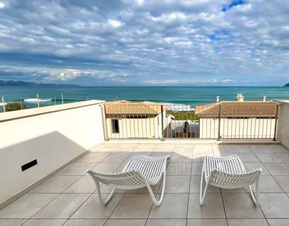 Diese neu erbaute Immobilie befindet sich in zweiter Meereslinie in Son Serra de Marina – einem Ort der Ruhe und Entspannung. Die Doppelhaushälfte erstreckt sich über 3 Etagen (einschließlich der Dachterrasse mit privater Terrasse) und wurde mit hochwertigen Materialien sowie modernem Design gebaut, was Komfort und Großzügigkeit gewährleistet.