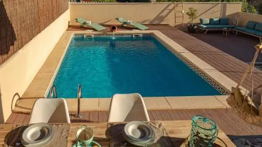 Moderne, gepflegte Doppelhaushälfte mit Pool, Heizung und Meerblick in Badia Gran zur Miete