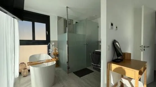 Objektbeschreibung: Dieses luxuriöse, moderne Einfamilienhaus bietet einfach alles: Genießen Sie die atemberaubende Aussicht auf das Meer und die Insel Cabrera. Acht geräumige Zimmer, davon 4 Doppelschlafzimmer, 3 Badezimmer, eine moderne offene Küche und ein Wohnzimmer mit weit öffnenden Schiebetüren zum Pool und Garten. Drei Terrassen ermöglichen einen fantastischen Weitblick. Entspannen Sie sich im Poolbereich oder machen Sie es sich bequem im mediterranen Garten auf den Sonnenliegen. Die moderne technische Ausstattung mit zentraler Klimaanlage, Fußbodenheizung mit Wärmepumpe, schnellem Internetzugang und Alarmanlage ermöglicht einen perfekten Wohntraum am Meer. Auch arbeiten wird hier zum Genuss! Zur Bucht der Cala Pi sind es nur wenige Gehminuten. Das Objekt ist ab 01.01.2024 zu mieten. Lage & Umgebung: Cala Pi in der Gemeinde Llucmajor steht hauptsächlich für die hübsche Bucht und den gleichnamigen Torrente (Sturzbach), aus welchem die Bucht entstanden ist. Unter Tauchern beliebt wegen des klaren Wasser, unter Familien wegen seines weißen, feinen Sandes. Die kleine Ortschaft Cala Pi bietet einige Restaurants und kleine Läden, ist touristisch jedoch eher ruhig geblieben.