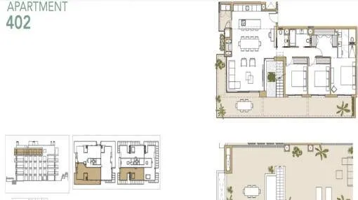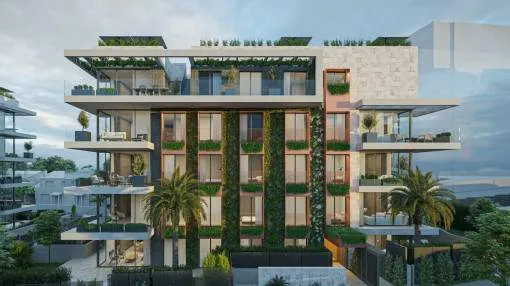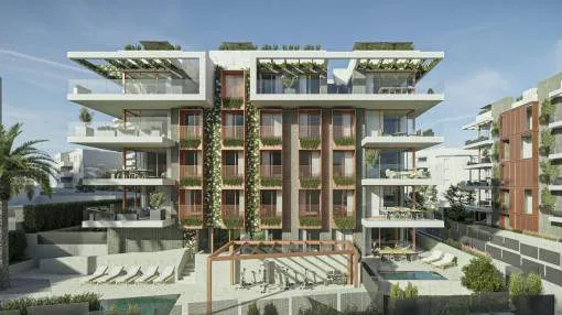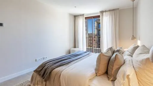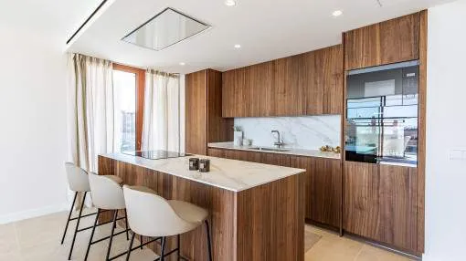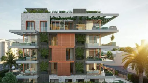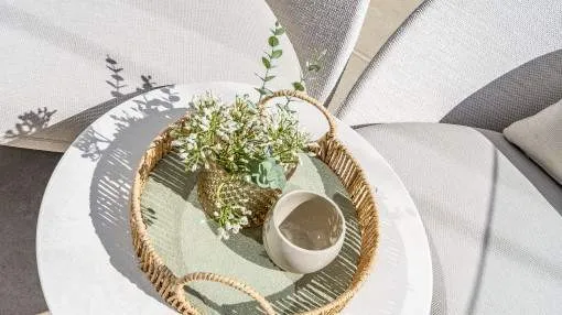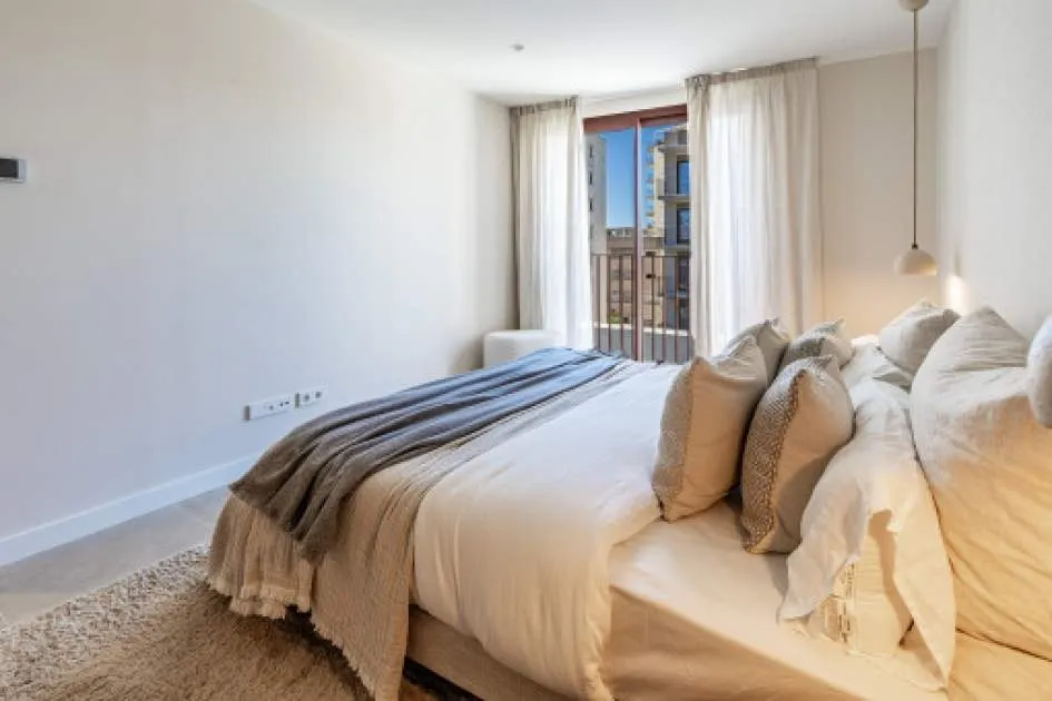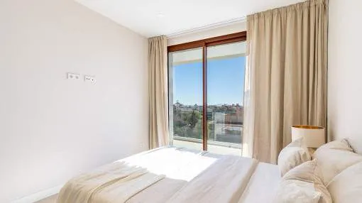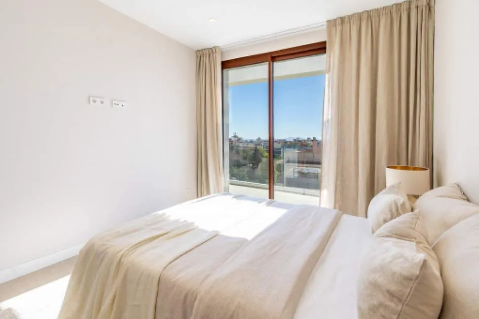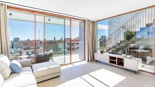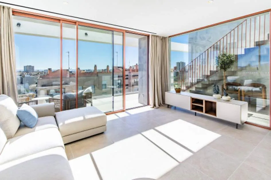 Das Highlight dieses Penthauses sind die großzügigen Außenflächen. Es bietet eine 58 qm große Terrasse auf der Wohnebene plus eine private Dachterrasse von 107 qm, mit einem spektakulären Panoramablick auf Palma und das dahinterliegende Meer.