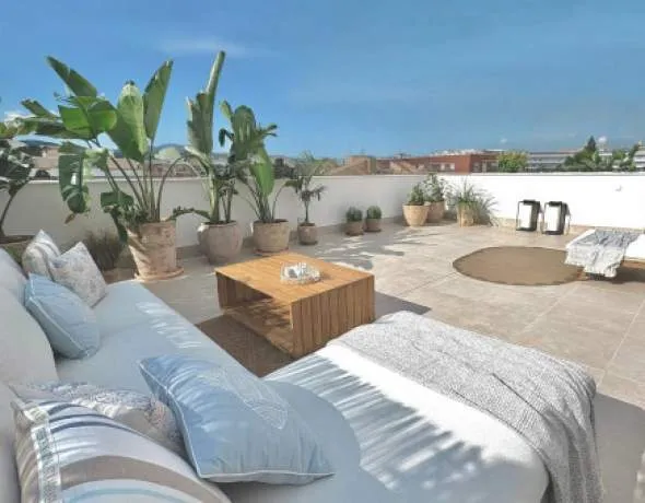 Das Highlight dieses Penthauses sind die großzügigen Außenflächen. Es bietet eine 58 qm große Terrasse auf der Wohnebene plus eine private Dachterrasse von 107 qm, mit einem spektakulären Panoramablick auf Palma und das dahinterliegende Meer.