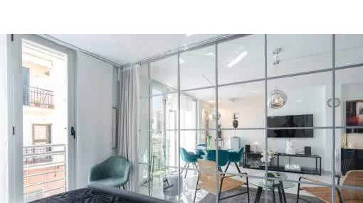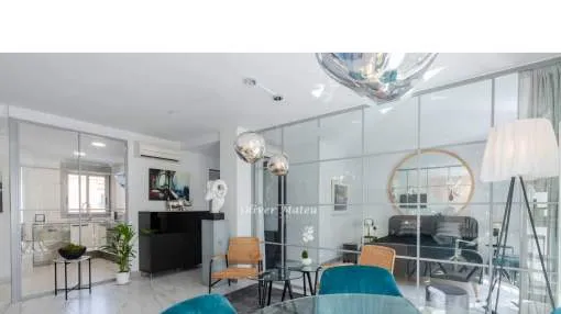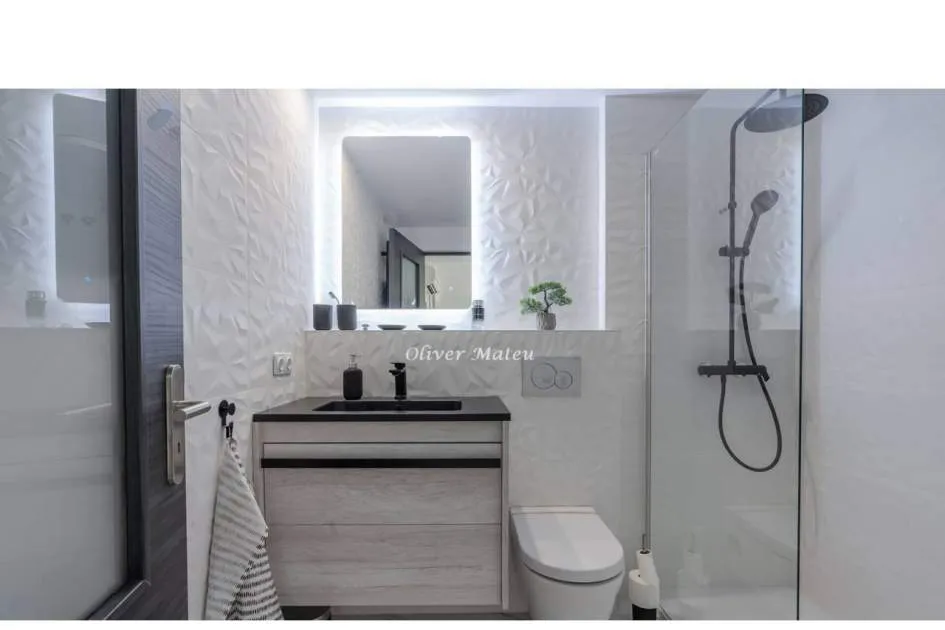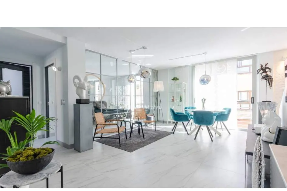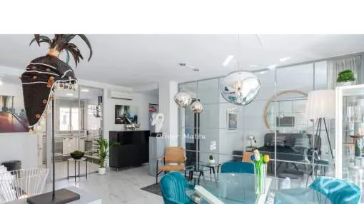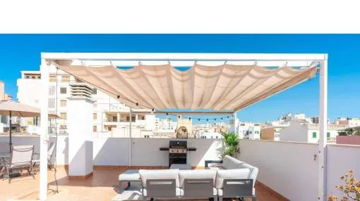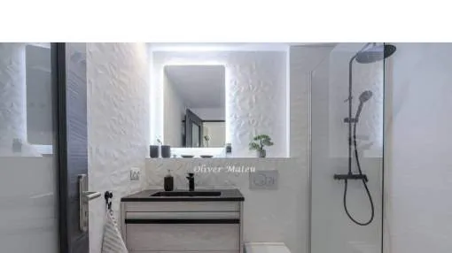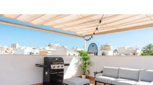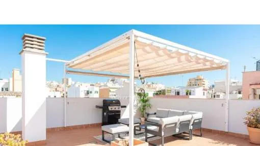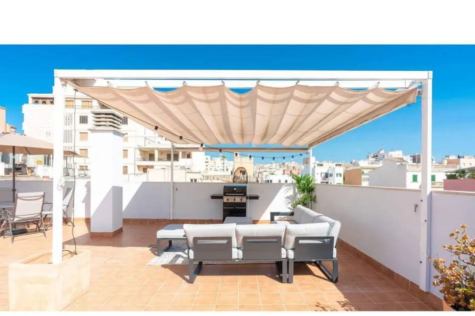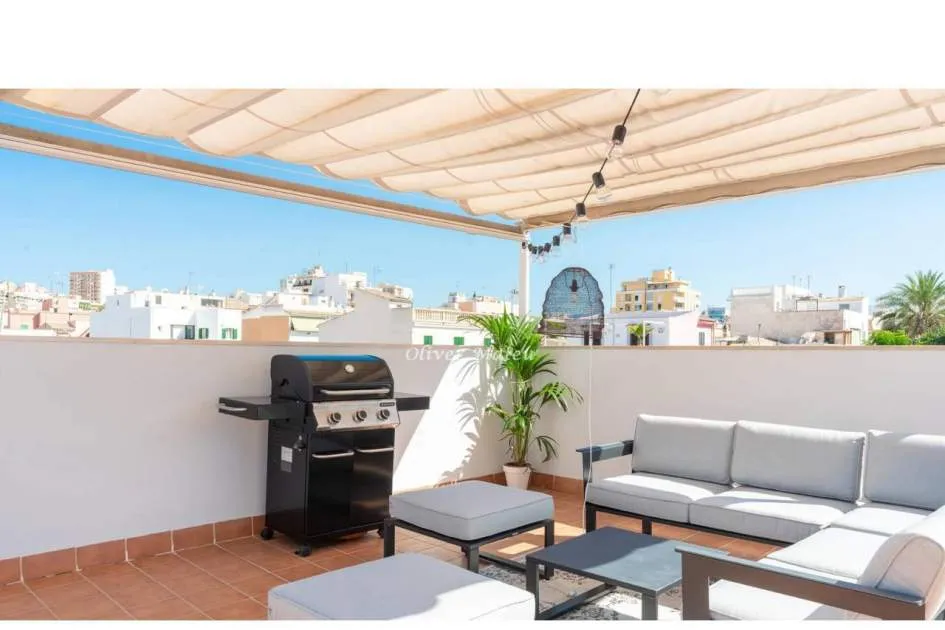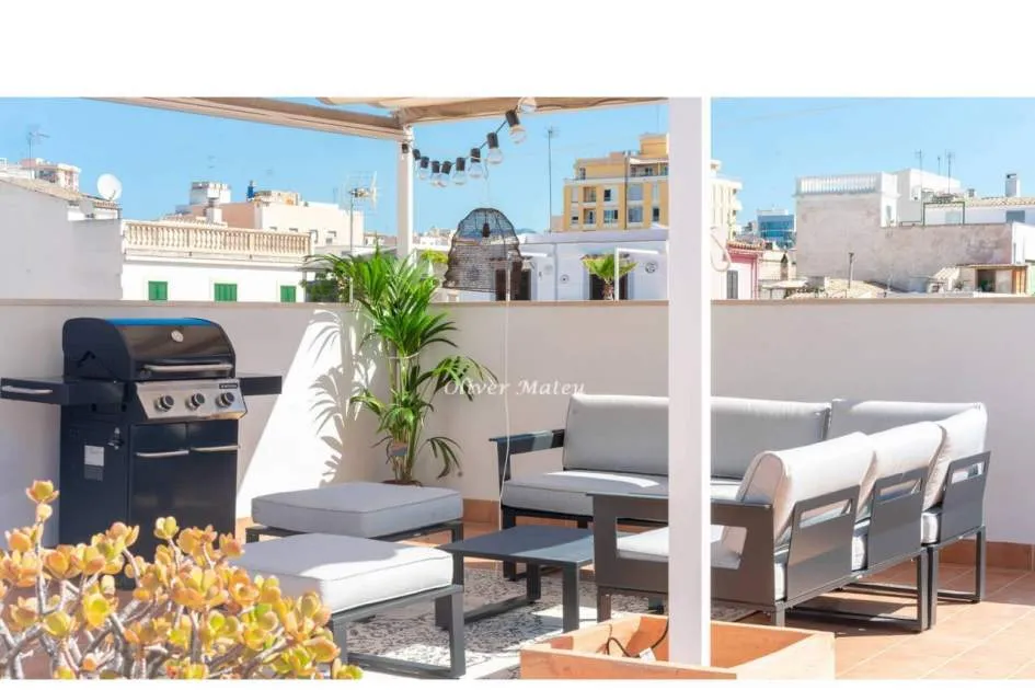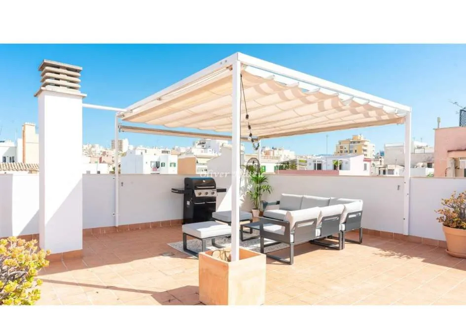 Modernes Penthouse mit großer Dachterrasse Gelegen in einer privilegierten Gegend von Son Espanyolet, befindet sich dieses charmante Penthouse in einem zweistöckigen Gebäude, das 2008 erbaut wurde. Eine perfekte Wohnung für diejenigen, die Ruhe suchen, aber nicht auf die Nähe zum lebendigen Leben von Santa Catalina und dem renommierten Palma Tennis Club verzichten möchten, beides nur wenige Gehminuten entfernt. Die Immobilie bietet eine funktionale und helle Aufteilung mit einem großen Wohn- und Esszimmer, das mit der Küche und der Waschküche verbunden ist. Sie verfügt über zwei Schlafzimmer mit Einbauschränken und ein modernes Badezimmer. Sie wurde komplett mit hochwertigen Materialien renoviert und wird möbliert verkauft, sofort bezugsfertig. Die große private Dachterrasse, direkt vom Wohnzimmer aus zugänglich, ist der ideale Ort, um das mediterrane Klima das ganze Jahr über zu genießen. Die großzügigen Abmessungen ermöglichen es, verschiedene Bereiche zu schaffen: Outdoor-Essbereich, Sonnenterrasse mit Liegestühlen oder eine gemütliche Grillzone mit Outdoor-Küche. Außerdem verfügt sie über Wasser- und Stromanschlüsse. Zusätzliche Ausstattung: Klimaanlage, Doppelverglasung, Porzellanfliesenböden, weiß lackierte Türen und Möbel inklusive.