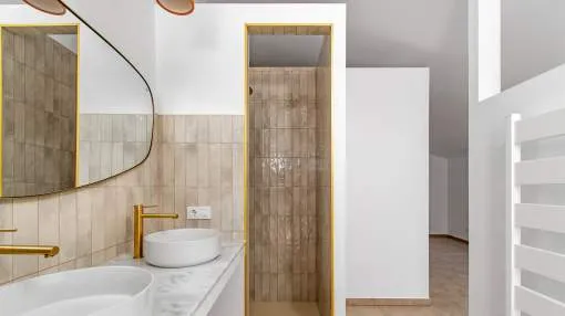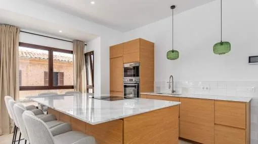 Beschreibung Dieses stilvolle Stadthaus erstreckt sich über drei Etagen und besticht durch klare Linienführung, edle Materialien und eine intelligente Raumaufteilung. Zentral, aber ruhig gelegen, befindet es sich in einer Seitenstraße im Herzen von Campos. Weniger anzeigen Mehr anzeigen
