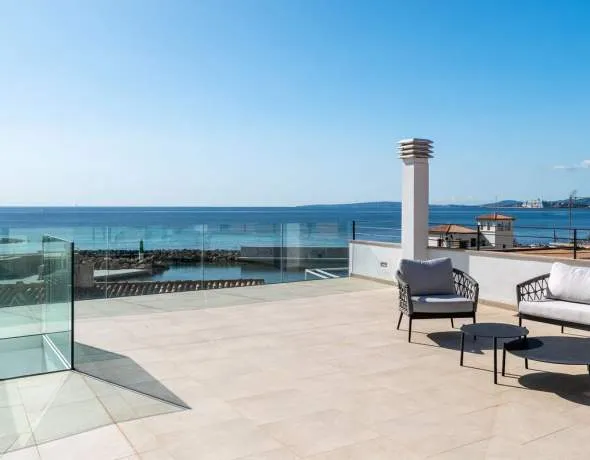 Dieses spektakulaere Townhouse wurde gerade komplett nach den hoechsten Standards reformiert und neu distribuiert. Das Townhouse befindest sich in privelgierter Lage in direkter Meeresnähe in Portixol/Molinar, in einer der charmantesten und beliebtesten Gegenden Palmas. Das Stadthaus mit einer Gesamtflaeche von ca. 385 qm verfuegt ueber drei Etagen, die aufgeteilt sind in ein Haupthaus und ein Studio,. Das Studio von ca. 70 qm bietet ein Wohn-Esszimmer und alle notwendigen Anschlüsse, um eine Küche einzurichten, ein Schlafzimmer mit Einbauschrank, ein eigenes Bad und zwei Terrassen. Das Studio eignet sich perfekt als Gästewohnung. Im anderen Teil der ersten Etage befinden sich zwei Doppelschlafzimmer mit Einbauschränken und zwei Bädern. Von diesem Teil des Hauses gelangt man über eine breite Treppe in die zweite Etage, die durch einen offenen lichtdurchfluteten grossen Wohnbereich mit offener Kueche besticht, auf dieser Ebene befindet sich auch das grosszuegige Hauptschlafzimmer mit Ankleideraum, Badezimmer ensuite, sowie ein Gaeste WC.