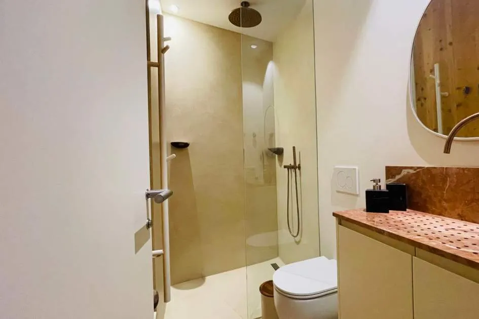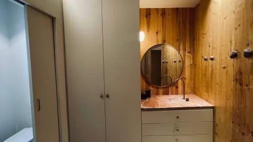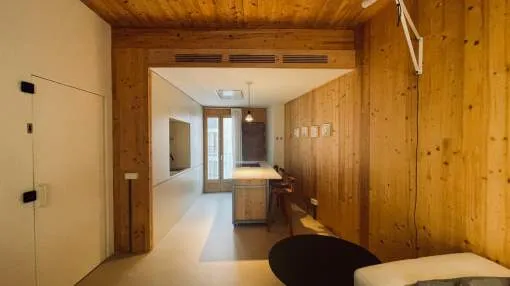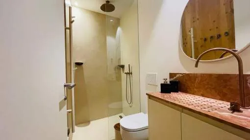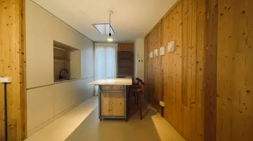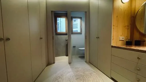 Mit ihrer einzigartigen zeitgenössischen Fassade und nachhaltigen Bauweise bietet dieses moderne Stadthaus einen lichtdurchfluteten Rückzugsort nur wenige Schritte vom historischen Zentrum Palmas entfernt. Durchdacht über fünf Ebenen geplant und vollständig durch einen privaten Aufzug verbunden, ist es das perfekte Pied-à-terre oder ein pflegeleichtes Stadtdomizil - stilvoll, praktisch und zukunftsorientiert. Die Hauptebene ist der Hauptsuite gewidmet, mit einem großzügigen Schlafzimmer, maßgefertigtem Ankleidebereich und einem clever gestalteten Bad en suite, das den Raum optimal nutzt. Im darüberliegenden Geschoss befinden sich ein zweites Doppelschlafzimmer und ein Gästebad sowie ein flexibler Raum, der als zusätzliches Gästezimmer, privates Büro oder zweite Ankleide dienen kann. Eine separate Waschküche ergänzt diese Etage und sorgt für zusätzlichen Komfort. Darüber öffnet sich das Haus zu einem hellen offenen Wohnbereich mit Küche und Lounge, ideal für entspanntes Wohnen oder geselliges Beisammensein. Den Abschluss bildet die großzügige private Dachterrasse mit eigenem Küchenbereich, perfekt für Mahlzeiten im Freien, Sundowner und Grillabende unter dem mediterranen Himmel. Natürliches Licht durchflutet das gesamte Haus, unterstützt durch warme Holzelemente und maßgeschneiderte Details. Für energieeffizienten Komfort und einfachen Unterhalt konzipiert, lässt sich dieses Zuhause das ganze Jahr über mühelos genießen. Der private Aufzug, der alle Etagen verbindet, macht den Alltag bequem, während die gesicherte Garage Platz für zwei Autos bietet und über eine Ladestation für Elektrofahrzeuge verfügt. In einer ruhigen Straße gelegen, aber nur wenige Gehminuten von Restaurants, Bars, Boutiquen, Märkten und dem Yachthafen entfernt, verbindet die Lage Privatsphäre und städtischen Komfort. Strände und Flughafen sind nur wenige Minuten entfernt und leicht erreichbar. Kontaktieren Sie First Mallorca, um eine private Besichtigung zu vereinbaren und eines der einzigartigsten modernen Häuser Palmas kennenzulernen.