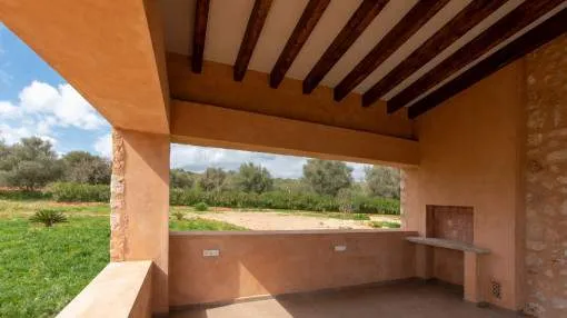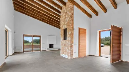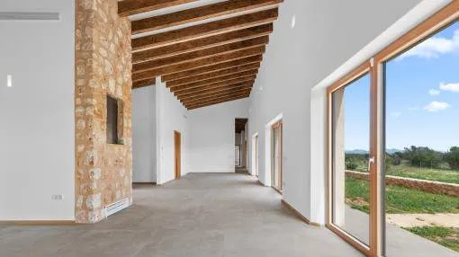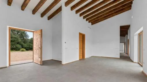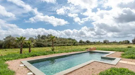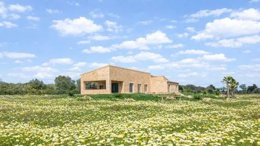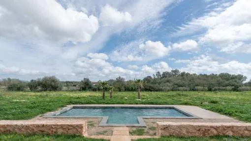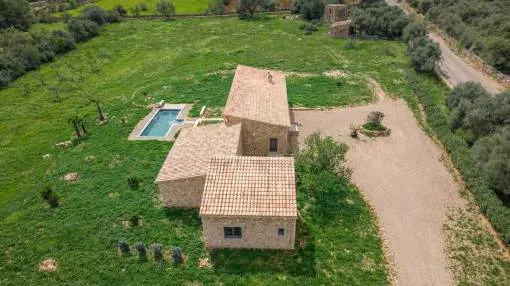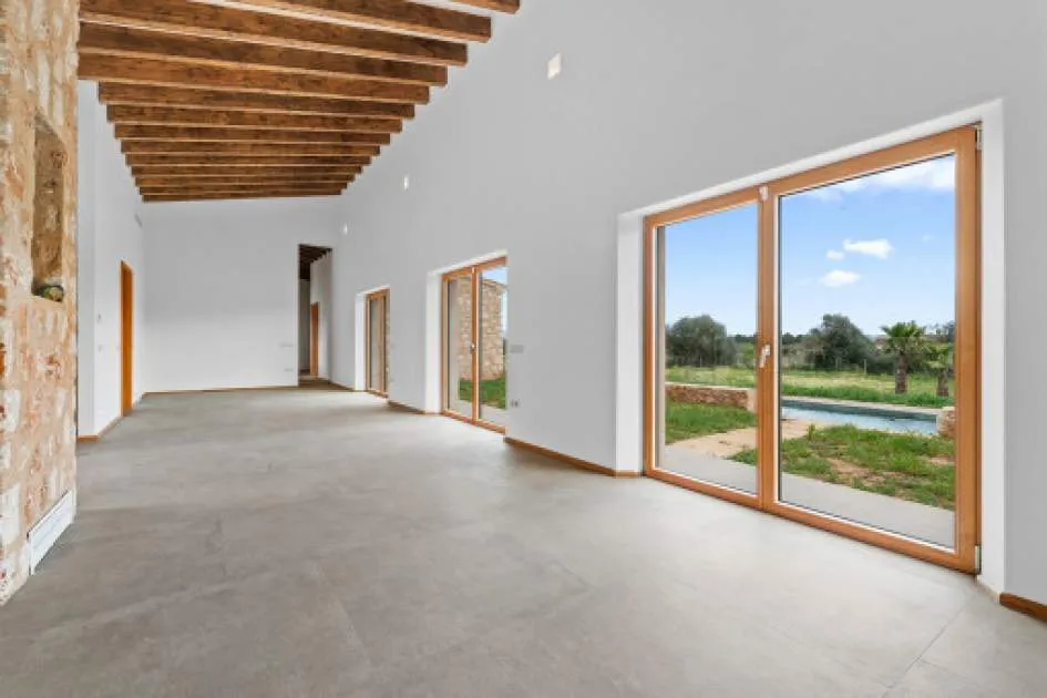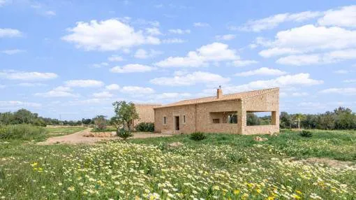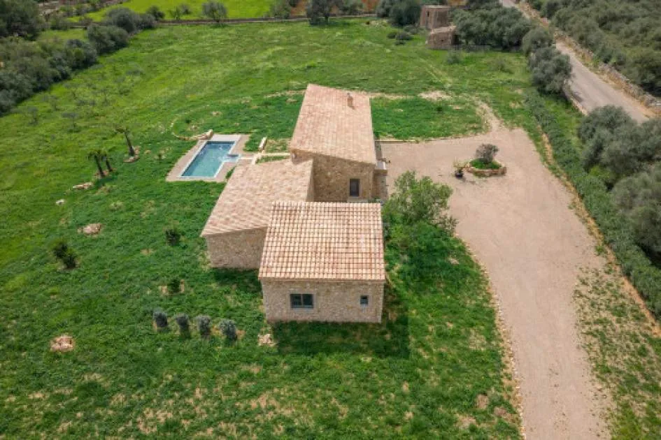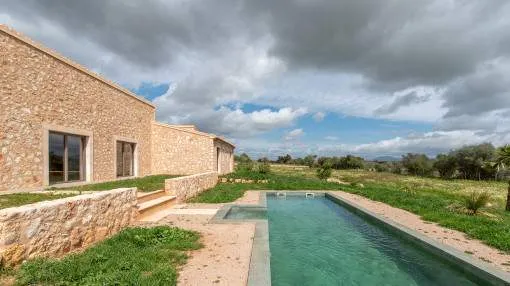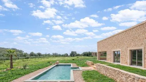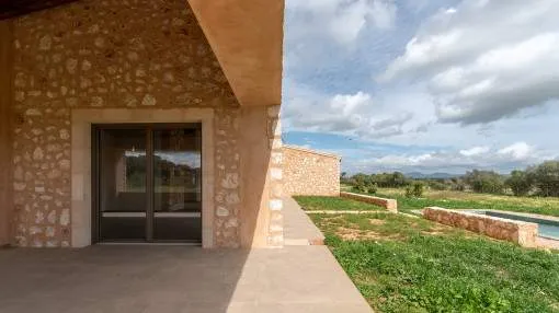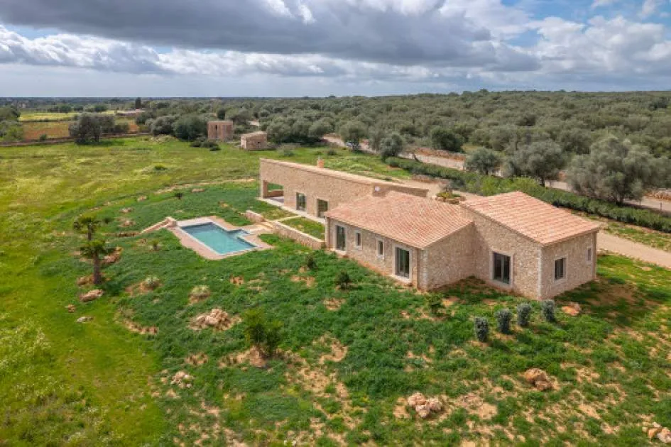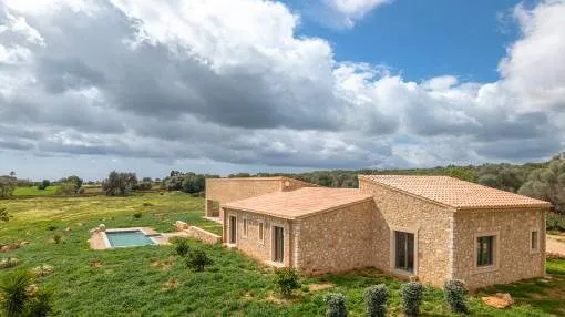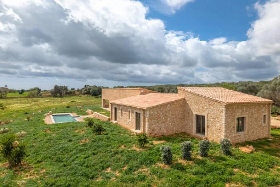 Neubau-Finca mit Natursteinfassade und Pool in ruhiger Lage zwischen Campos und Es Trenc