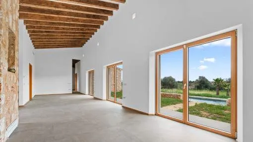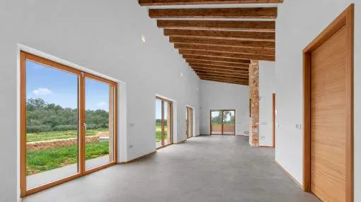 Objektbeschreibung: Südlich von Campos, in Richtung des beliebten Naturstrandes Es Trenc, liegt diese Neubau-Finca in ruhiger, ländlicher Umgebung mit weitem Blick über die mallorquinische Landschaft bis zum Sant Salvador. Die Lage vereint ein hohes Maß an Privatsphäre mit guter Erreichbarkeit der Küste und umliegenden Ortschaften. Ein besonderes Highlight ist der geschützte Altbestand einer authentischen Wassermühle mit Safreig sowie eines separaten, traditionellen Steinhauses. Die Mühle kann vom Käufer renoviert werden und bietet eine seltene Gelegenheit, ein typisch mallorquinisches Element nach eigenen Vorstellungen zu gestalten. Die ebenerdige Finca mit ca. 235 qm Wohnfläche wurde als Herzensprojekt realisiert und überzeugt durch eine traditionelle, durchdachte Bauweise. Die Raumaufteilung trennt klar Wohn- und Schlafbereiche, während der offene Wohn-, Ess- und Küchenbereich fließend ineinander übergeht. Großzügige Fensterflächen öffnen sich nach Süden zu Terrasse, Garten und Pool. Der überdachte Porche schafft einen idealen Übergang zwischen Innen- und Außenbereich und ermöglicht ganzjähriges Leben im Freien. Das ca. 16.341 qm große Grundstück ist vollständig eingefriedet. Die Bauweise überzeugt durch massive, atmungsaktive Ziegel, starke Isolation und eine handverlesene Natursteinfassade. Die maßgefertigten Fenster aus Österreich bestehen innen aus massivem Lärchenholz, außen aus Aluminium und verfügen über Dreifachverglasung. Innentüren aus Lärchenholz sowie Außentüren aus Lärchenholz und Altholz sind maßgefertigt und stammen aus Südtirol. Fußbodenheizung, Klimaanlage (warm/kalt) und Lichtkonzept sorgen für Komfort. Stadtstrom, Stadtwasser, Internet und Alarmsystem sind vorhanden; die Ausführung entspricht aktuellen Standards inkl. 10-jähriger Strukturversicherung (OCT). Eine außergewöhnliche Finca, die traditionelle Bauweise, moderne Technik und authentische Details in besonderer Qualität vereint. Rendite aus Ferienvermietung: Mit dem „Porta Holiday Renditerechner“ können Sie zur ersten Orientierung unverbindlich Ihre potenziellen Einnahmen aus einer möglichen Ferienvermietung berechnen. Hinweis: Aufgrund der aktuellen Gesetzeslage kann es in bestimmten Gemeinden zu einer Beschränkung der Vermietbarkeit kommen bzw. werden keine neuen touristischen Lizenzen mehr vergeben. Ihr Porta Mallorquina Immobilienberater berät Sie gerne, ob die von Ihnen gewählte Immobilie davon betroffen ist. Hier geht’s zum Renditerechner. Lage & Umgebung: Das Landstädtchen Campos im Südosten der Insel liegt verkehrstechnisch günstig auf halbem Weg zwischen Llucmajor und Santanyí. Umgeben von weitläufigen, landwirtschaftlich genutzten Flächen bietet es zahlreiche Geschäfte für den täglichen Bedarf, Restaurants und Sporteinrichtungen. Von dem schon seit dem Mittelalter bestehenden Ort stehen heute nur noch einige Wehrtürme, heutzutage ist Campos eine lebendige Kleinstadt, die vor allem an den Markttagen zahlreiche Besucher anlockt. Der berühmte, lange Sandstrand von Es Trenc mit seinen Dünen und türkisblauem Meer gehört zur Gemeinde Campos und bietet Badefreuden mit karibischem Flair. Den Flughafen erreichen Sie in 25 Minuten, die Inselhauptstadt Palma liegt rund 35 km entfernt.
