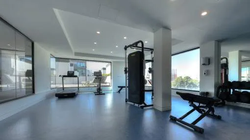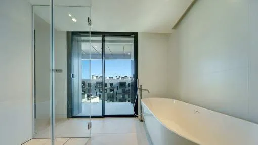 Neubau-Penthouse mit 2 SZ, privater Dachterrasse, Jacuzzi und Meerblick in Nou Llevant, Palma