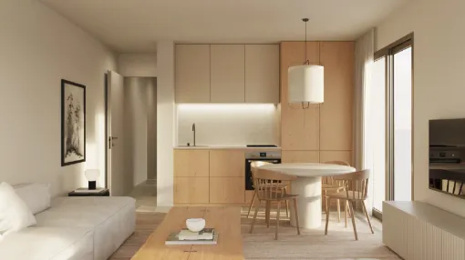 - Küche mit integriertem Wohnbereich