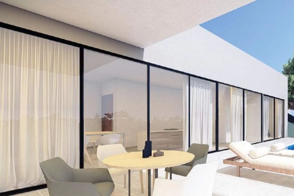 Vom oberen Geschoss aus genießt man einen schönen Blick über die Landschaft und bis hin zum Meer. Auf dieser Ebene befinden sich der offene Wohn- und Essbereich sowie ein großzügiges Schlafzimmer mit Ankleidebereich und Bad ensuite. Von allen Räumen hat man eine direkte Verbindung zum Pool und der Terrasse. Hier kann man die zahlreichen Sonnenstunden Mallorcas in vollen Zügen genießen.