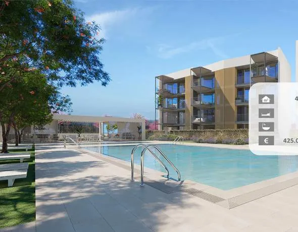 Diese moderne Wohnanlage mit vier energieeffizienten Gebäuden und insgesamt 36 Apartments entsteht in einem beleibten Badeort im Südwesten der Insel nur 15 Kilometer von Palma entfernt. Die Region bietet eine perfekte Infrastruktur und hat einen hohen Freizeitwert. Herrliche Strände, exklusive Yachthäfen, Golfplätze, Einkaufsmöglichkeiten und Sporteinrichtungen sind mit dem Auto schnell erreicht. Die Residenz, deren Fertigstellung für das 1. Trimester 2026 geplant ist, liegt nur 300 Meter vom wunderschönen Sandstrand des Ortes entfernt und bietet den Eigentümern schöne Gemeinschaftsbereiche mit Swimmingpool, Sonnenterrasse, Kinderpool, Veranstaltungsraum, Fitnessraum, Tiefgarage und Fahrradkeller. Die hellen Apartments bester Ausstattungsqualität und mit Wohnflächen zwischen 48 m² und 82 m² verfügen über 1-3 Schlafzimmern, 2 Bäder, (eines en suite), eine Ankleide, ein großzügiges Wohn-/Esszimmer, eine voll ausgestattete Küche mit Wirtschaftsraum sowie eine große Terrasse. Zu den Erdgeschoss-Wohnungen gehört ein kleiner Privatgarten.